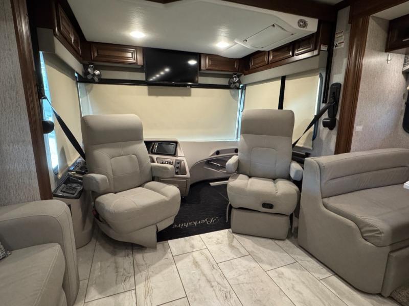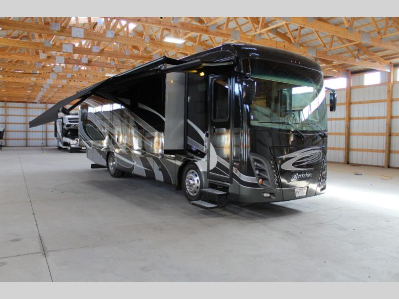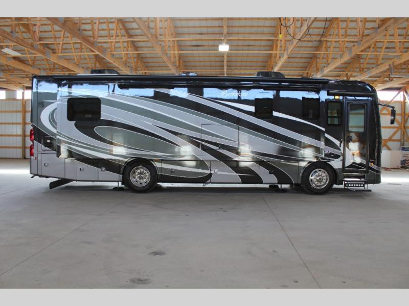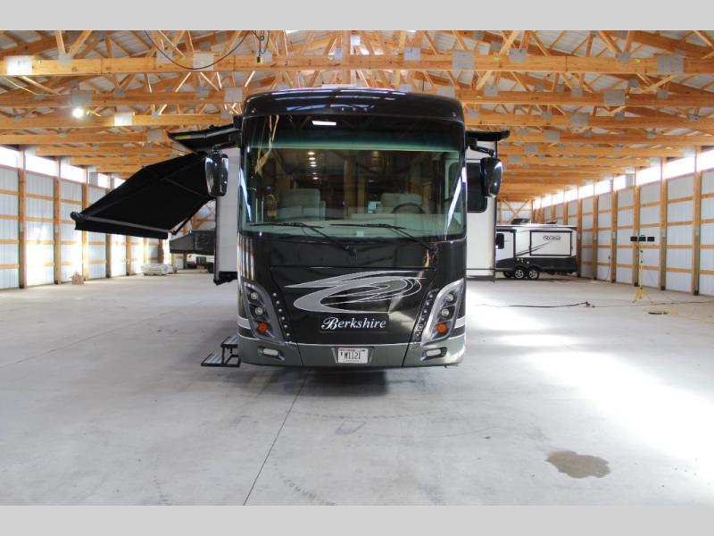 Experience the luxury and power behind the Berkshire Class A diesel motorhome by Forest River. Each model includes a Cummins ISB turbo diesel 6.7 liter, 360 HP engine that sits on a Freightliner XCR raised-rail chassis. The Allison 3000MH 6-speed transmission and V-Ride rear suspension will provide an exceptional driving experience, and the exterior full-body paint with BASF 4x Clearcoat features four different choices for maximum eye appeal. Each Berkshire is constructed with a crowned and layered vacuum bonded fiberglass roof, a tube steel firewall with polystyrene insulation, and a Tru-Brace anti camber chassis support system for a motorhome that will last for years to come. You can customize the interior with wood grain options, designer fabric options, and even surface options to put your own touch on the coach. Each model also includes a "soft touch" padded ceiling, roller-style day/night shades, polished porcelain tile throughout, and many more interior comforts!