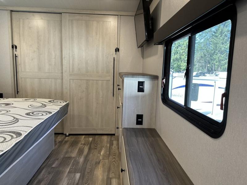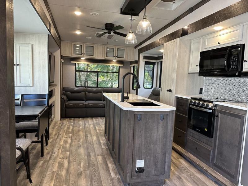 Say goodbye to the boring and mundane, and say hello to fresh and exciting with the Forest River Cardinal Limited fifth wheel! The LCI Next Generation frame technology has a Z-frame design, and it is also powder-coated. There are dual roof vents for a breathable attic, an Underbelly Armor for rigid protection from road debris, 12V tank heat pads with underbelly forced-air heat and radiant foil insulation, and a full pass-through front storage with forced-air heat. There are some features that are quite easy to set up, like the power awning with LED light strip, the exterior heated water and convenience center, the battery disconnect located in the main storage compartment, the external LP quick connect, and the hitch light. You will also be impressed with the modern features found on the Cardinal Limited. There is a Winegard 360+ (AM/FM TV antenna with 4G and Wi-Fi extender prep), and each unit has been prepped for solar panels, a rear camera, and a stackable washer/dryer.