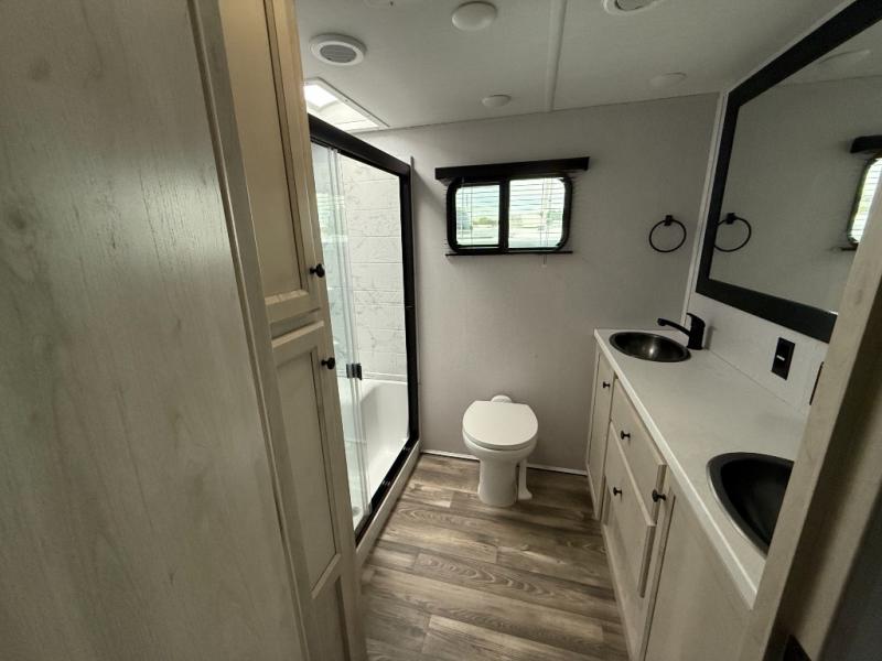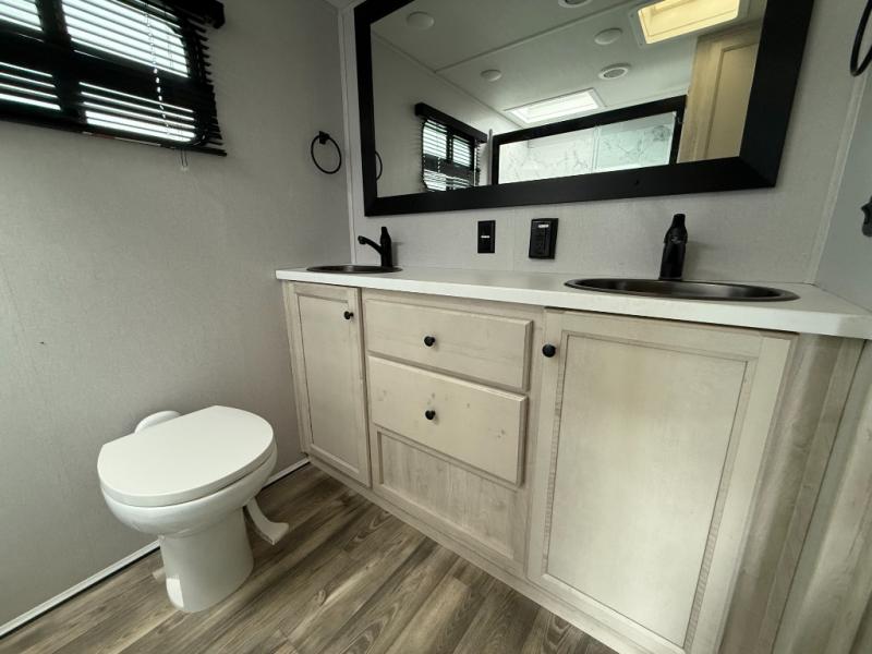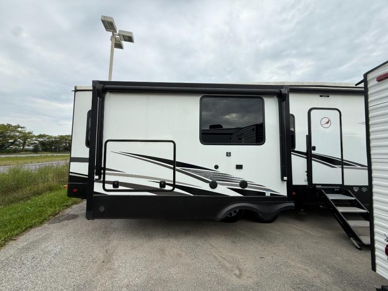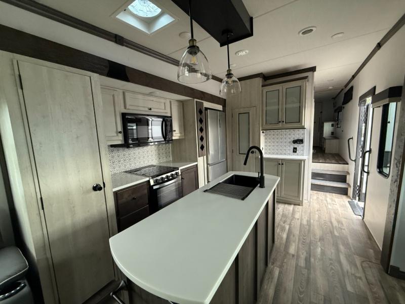 Say goodbye to the boring and mundane, and say hello to fresh and exciting with the Forest River Cardinal Limited fifth wheel! The LCI Next Generation frame technology has a Z-frame design, and it is also powder-coated. There are dual roof vents for a breathable attic, an Underbelly Armor for rigid protection from road debris, 12V tank heat pads with underbelly forced-air heat and radiant foil insulation, and a full pass-through front storage with forced-air heat. There are some features that are quite easy to set up, like the power awning with LED light strip, the exterior heated water and convenience center, the battery disconnect located in the main storage compartment, the external LP quick connect, and the hitch light. You will also be impressed with the modern features found on the Cardinal Limited. There is a Winegard 360+ (AM/FM TV antenna with 4G and Wi-Fi extender prep), and each unit has been prepped for solar panels, a rear camera, and a stackable washer/dryer.