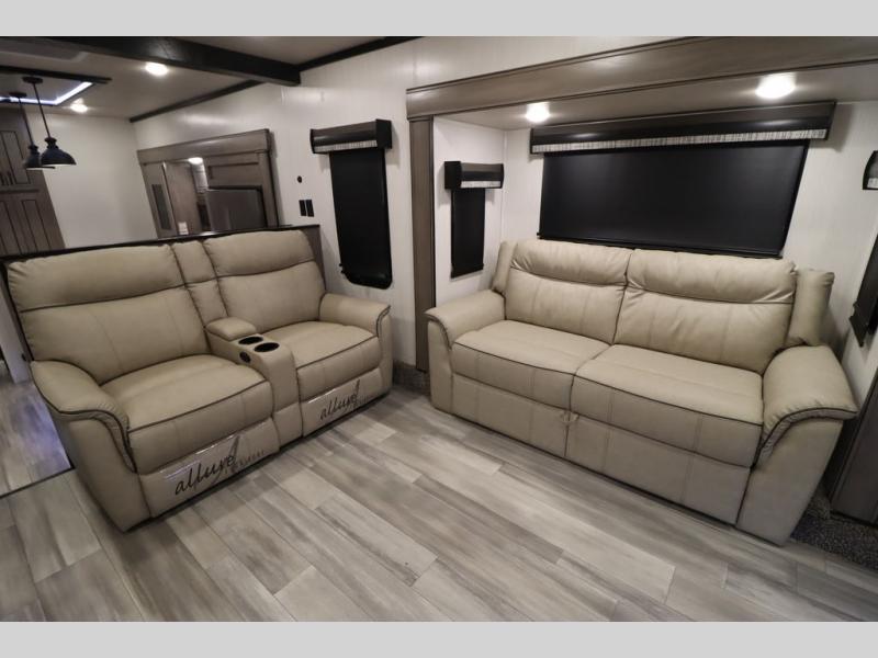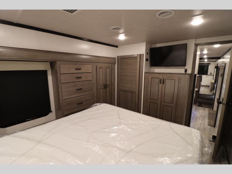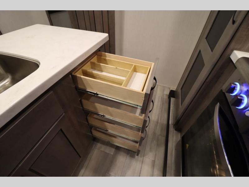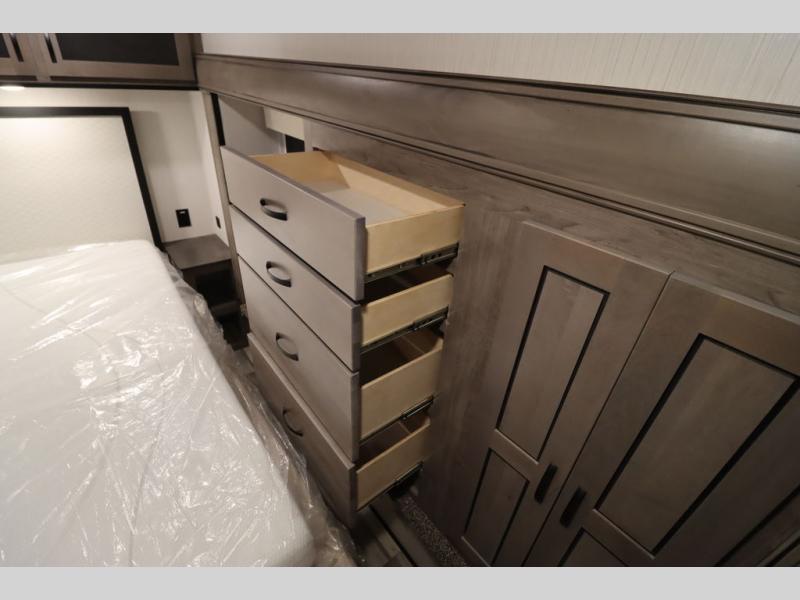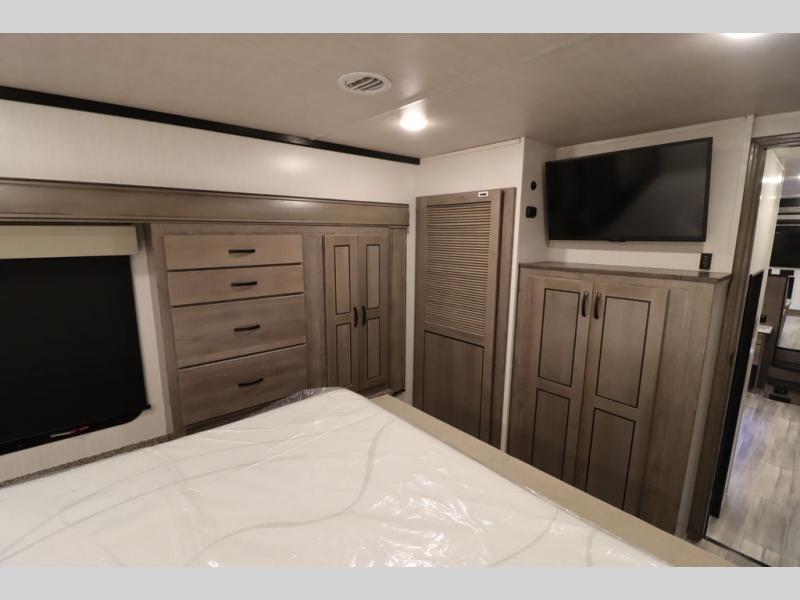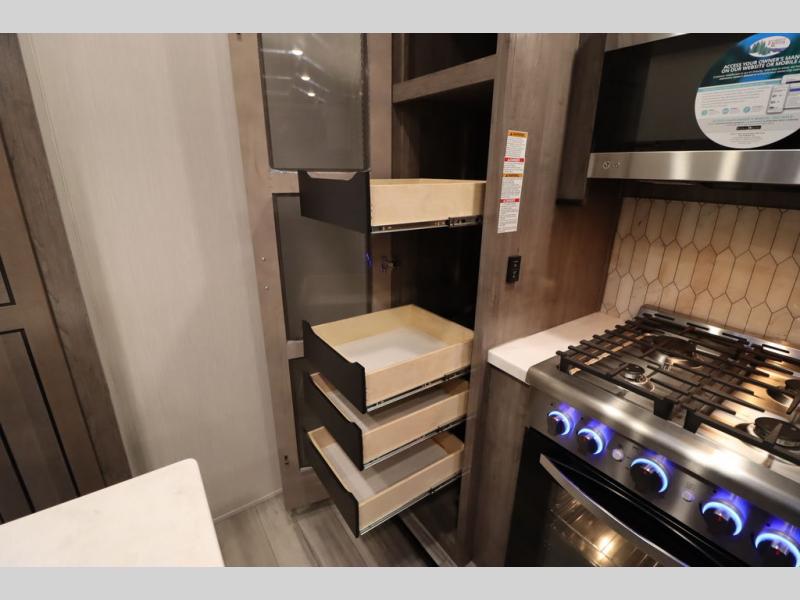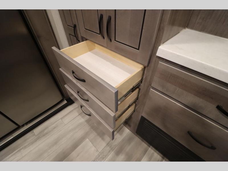 You will have peace of mind camping with any one of these Forest River Cedar Creek fifth wheels or fifth wheel toy haulers! Their aluminum superstructure, high gloss gelcoat exterior, and Dexter heavy duty axles with E-Z lube hubs will outlast all of your adventures. The Silaprene bonded sidewalls resist UV, heat, cold, oils, and highway chemicals with a bond that grows stronger with age while resisting delamination too. With the Vegatouch panel and Firefly dimmer switches, you can have total control of your unit in the palm of your hand. The exterior full docking station has multi-function tank levers, black tank flush, 12V battery disconnect, and an outside shower to keep the dirt where it belongs. The congoleum flooring throughout not only makes you feel right at home, but is also easy to clean. Come find the right model for you today!