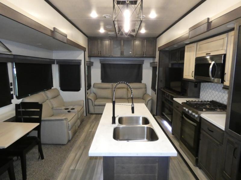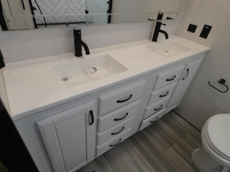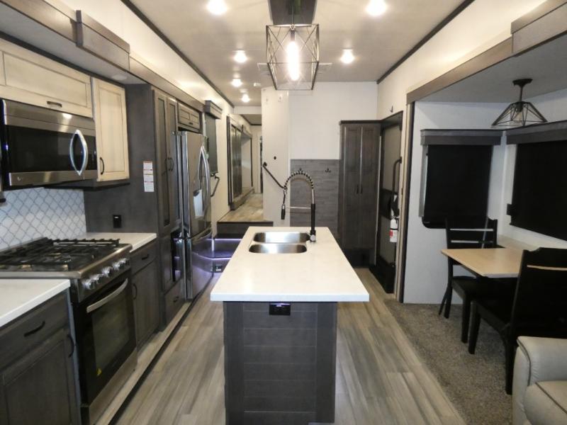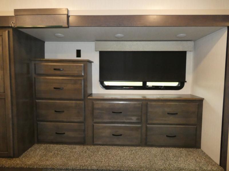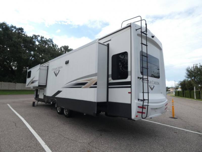 Only with the Forest River Cedar Creek Champagne Edition fifth wheel will you find a luxurious and inviting place to spend your time away. These units are the top of the line, and you will find class around every corner. The Nev-R-Adjust® brakes are always properly adjusted for improved stopping power in half the distance, and you will also have 17.5” “H” rated tires on 8,000-LB Dexter® axles. The exterior has a Go Power® solar panel with battery as well as a TST tire pressure monitoring system and a pet leash latch to prevent your puppy from running off. You'll always have hot water with the Truma On-Demand hot water heater, and you can stay at the perfect temperature during the blazing summer heat with the two Whisper Quiet ducted air conditioners with dual-zone control and cold air returns.