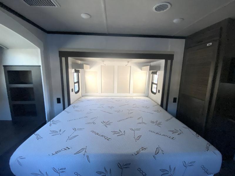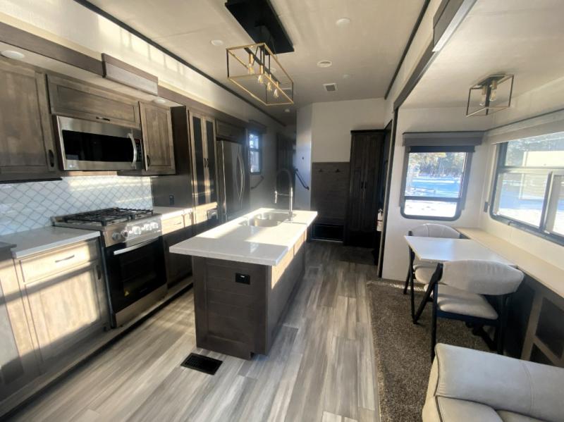 Only with the Forest River Cedar Creek Champagne Edition fifth wheel will you find a luxurious and inviting place to spend your time away. These units are the top of the line, and you will find class around every corner. The Nev-R-Adjust® brakes are always properly adjusted for improved stopping power in half the distance, and you will also have 17.5” “H” rated tires on 8,000-LB Dexter® axles. The exterior has a Go Power® solar panel with battery as well as a TST tire pressure monitoring system and a pet leash latch to prevent your puppy from running off. You'll always have hot water with the Truma On-Demand hot water heater, and you can stay at the perfect temperature during the blazing summer heat with the two Whisper Quiet ducted air conditioners with dual-zone control and cold air returns.
