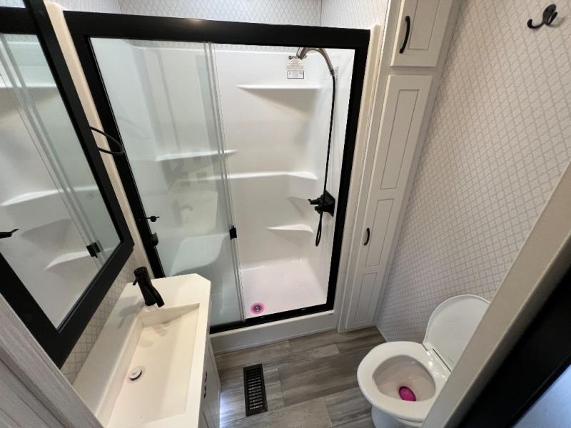 Each time you visit your favorite camping destination, you'll be so grateful to find the Forest River Cedar Creek Cottage destination trailer waiting for you! The exterior has ABS ribbed underbelly panels with no screws into the I-beam frame, a decorative front cap with molded picket fence, Dexter® heavy-duty axles with heavy-duty link plates and shackles, an electric awning with LED night lighting strip, and an enclosed and triple-layered insulated underbelly. The thermal-pane patio door will allow you to see the beautiful outside scenery from the comfort of indoors, and the 12V home theater system and control app for your smart phone will entertain you throughout all adventures.