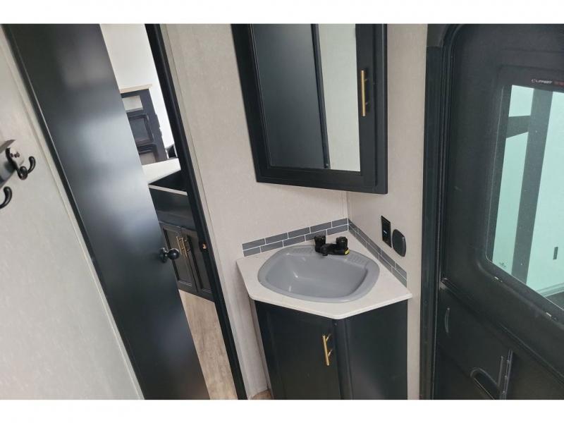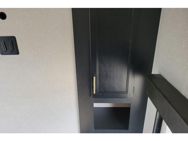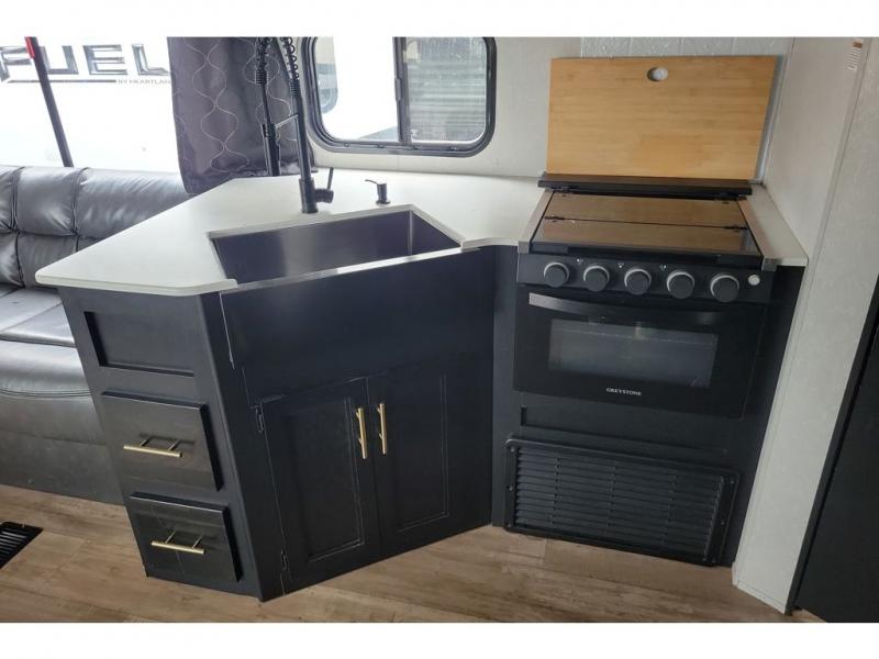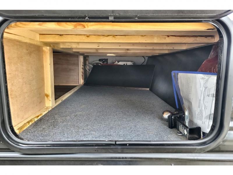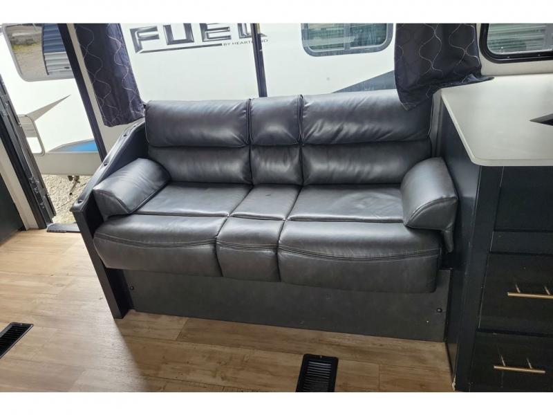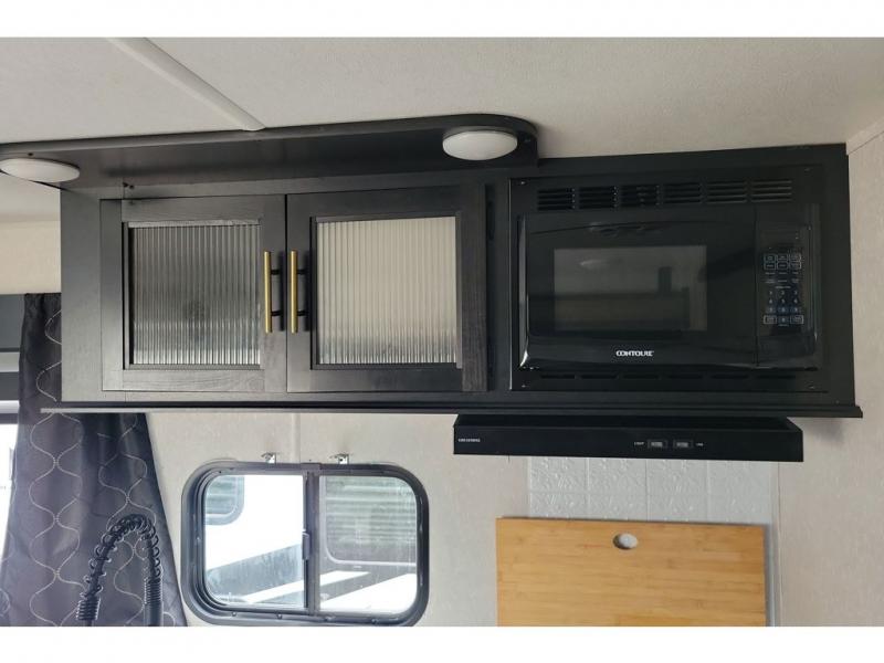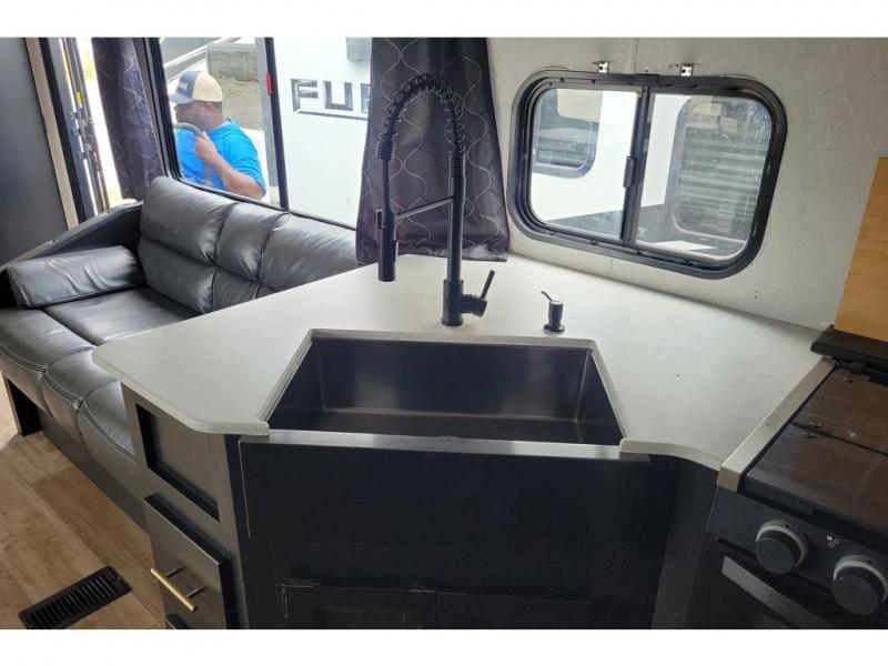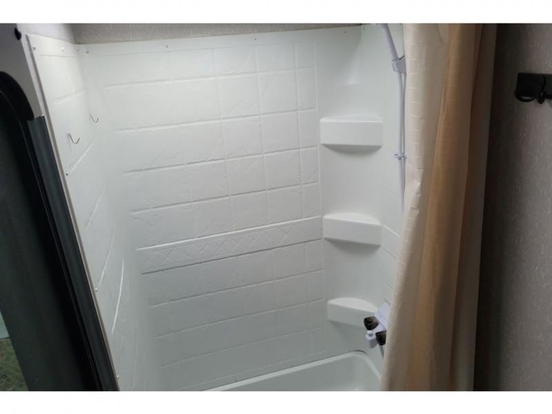 You won't believe all that is included with this travel trailer! Starting with the dual entry doors for a smooth flow of traffic to the outside storage areas, the outside TV mount, the outside kitchen, and the rear storage rack. The kiddos or guests can sleep on the set of double bunk beds with a ladder which are conveniently next to the rear corner bathroom that has a tub/shower and an entrance/exit door. The U-shaped dinette and sofa can also transform into extra sleeping spaces if needed. Lay your head at night on the walk around queen bed with wardrobes on either side, a TV mount area, and a linen closet for your clothes. There is even a fireplace below the TV mount at the entertainment center for a cozy evening indoors!