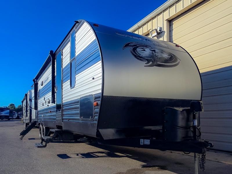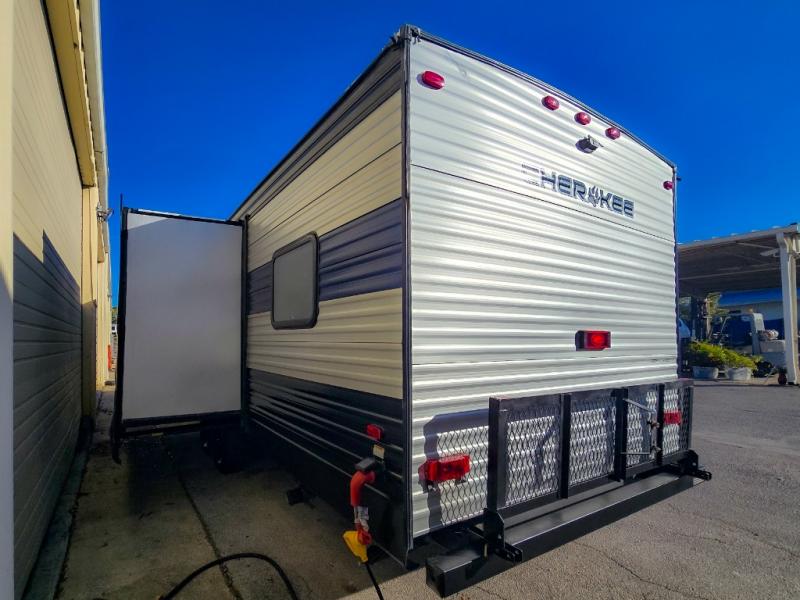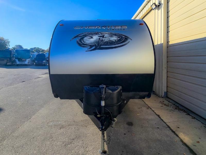 If the open road is calling your name, then answer it with one of these Forest River Cherokee travel trailers or toy haulers! A seamless roofing membrane with heat reflectivity covers these units and an armored underbelly tank enclosure protects it from road debris. The Power Gear frame technology holds them together and also comes with a space saver rail design. An outside shower with hot and cold water helps to keep the dirt outside where it belongs. With the Campfire package, you will get a beautiful entertainment center to watch your favorite movies, a sink cover for more prepping space, and a 6 gallon DSI gas/electric water heater for hot showers each morning. The Cherokee Total Control app and remote control system allows you to control your unit at the touch of a finger. A few other features you will appreciate include a super kitchen, USB charging station, and light filtering sheer shading premium blackout zebra shades for added privacy. Come find your favorite model today!