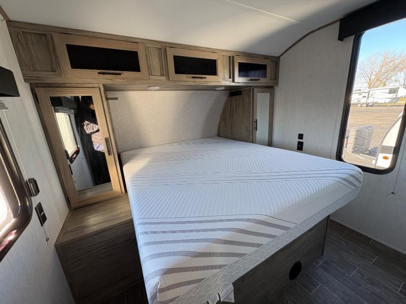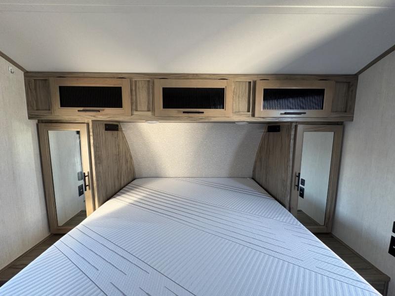 With every Forest River Cherokee Alpha Wolf travel trailer, you can enjoy off-grid camping with the Juice Pack solar power feature which includes a 50W roof mount panel, Series 27 battery, battery disconnect and box, volt meter and 30 Amp solar charger. The Juice Pack will continuously charge your battery bank and power your entire 12V electrical system including your Cannon refrigerator. With good sun your refrigerator will run for 60+ hours. Some other highlights include Zebra shades in the main living area, a motion sensing night light in the bathroom, plus deluxe furniture and bedding including a super-plush Evergreen mattress for your comfort. Each unit is constructed using a one-piece fiberglass, gel-coated, front cap with LED strip lights, an engineered wood "SuperTruss" roof structure, and "ToughBend" rigid skirt metal making each Alpha Wolf more aerodynamic and having increased structural strength. Be the Alpha in your group, choose your very own Cherokee Alpha Wolf trailer today!