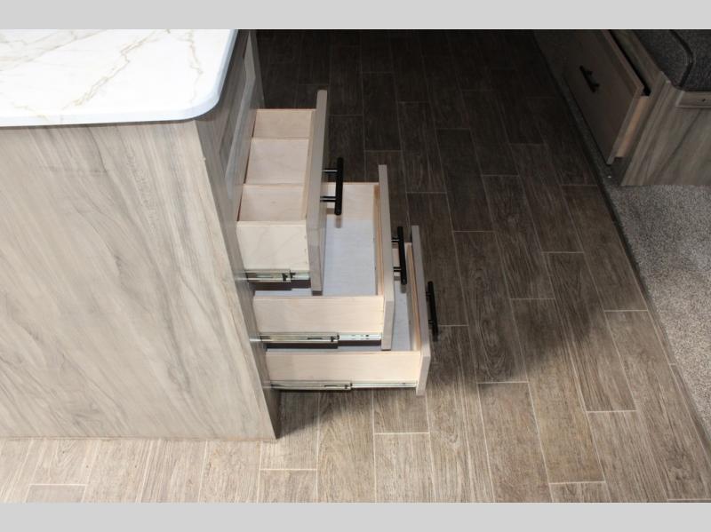 With every Forest River Cherokee Alpha Wolf travel trailer, you can enjoy off-grid camping with the Juice Pack solar power feature which includes a 50W roof mount panel, Series 27 battery, battery disconnect and box, volt meter and 30 Amp solar charger. The Juice Pack will continuously charge your battery bank and power your entire 12V electrical system including your Cannon refrigerator. With good sun your refrigerator will run for 60+ hours. Some other highlights include Zebra shades in the main living area, a motion sensing night light in the bathroom, plus deluxe furniture and bedding including a super-plush Evergreen mattress for your comfort. Each unit is constructed using a one-piece fiberglass, gel-coated, front cap with LED strip lights, an engineered wood "SuperTruss" roof structure, and "ToughBend" rigid skirt metal making each Alpha Wolf more aerodynamic and having increased structural strength. Be the Alpha in your group, choose your very own Cherokee Alpha Wolf trailer today!