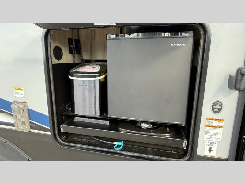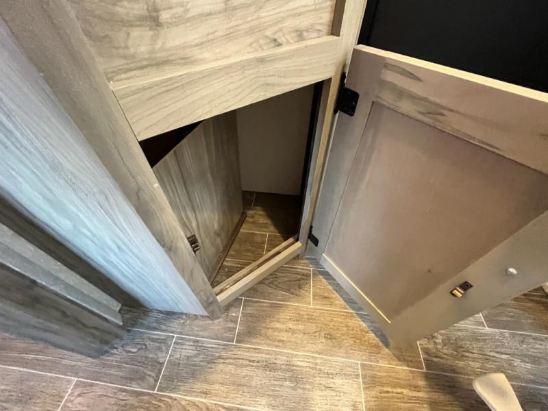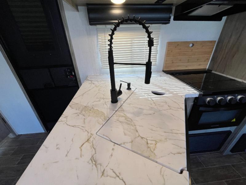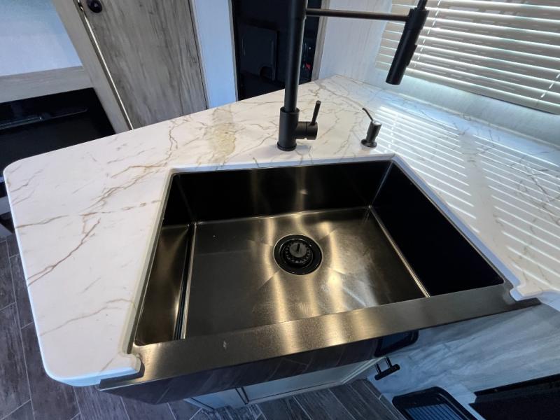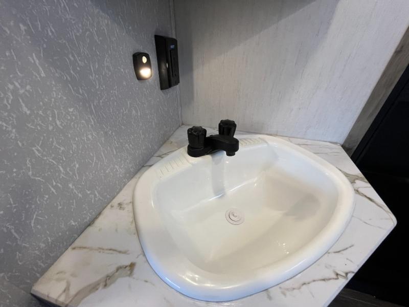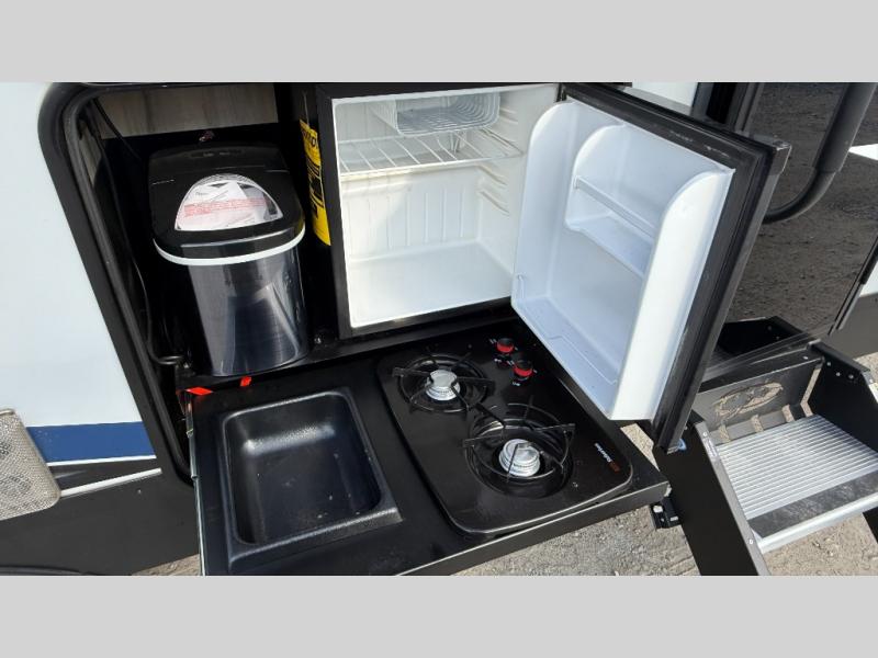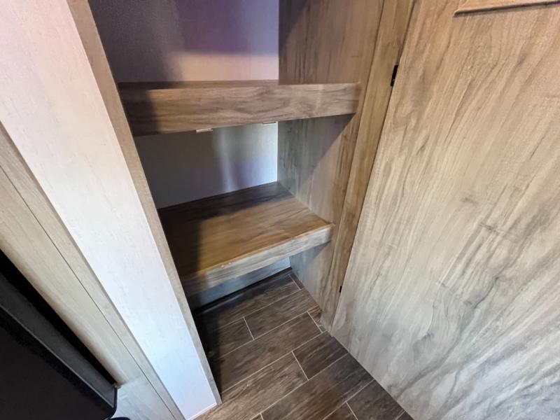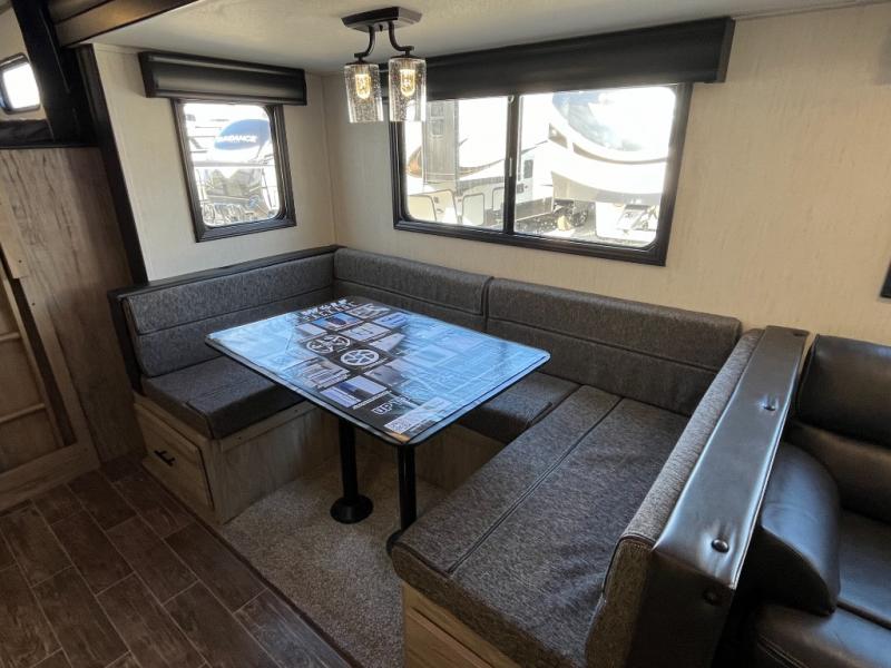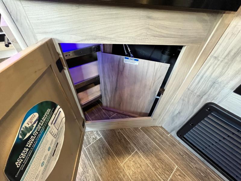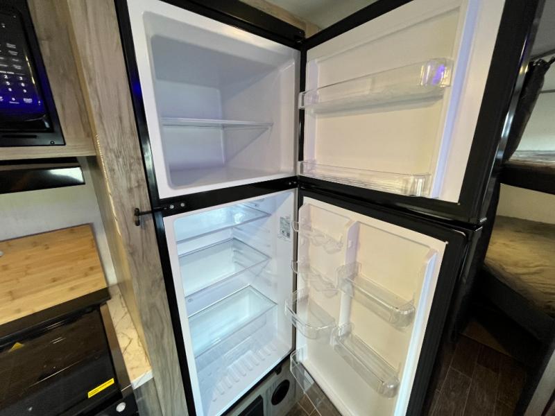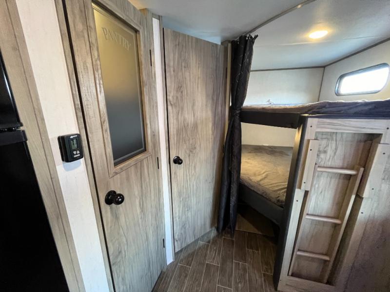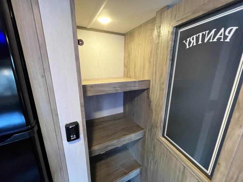 Looking for a multi-sleeper trailer to sleep nine to ten happy campers that also includes dual entry doors for convenience, an outside kitchen for the cook in the group, and a fireplace for cozy inside evenings? This Alpha Wolf has you covered plus gives you double-sized bunks with a ladder next to a full bathroom for convenience for your family and friends. The bathroom also includes a second exterior entry door. The main living and kitchen area has a super U-dinette to utilize as a dining table, game table, work station, and/or an extra sleeping space. You will also find a walk-in pantry and full kitchen amenities including a farm-style sink, a residential refrigerator, and dual pots and pans drawers. The exterior provides a 20' awning for an outdoor living area, pass-through storage for larger gear, and a deluxe outside kitchen.