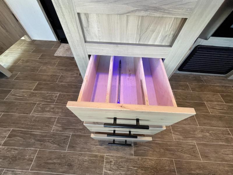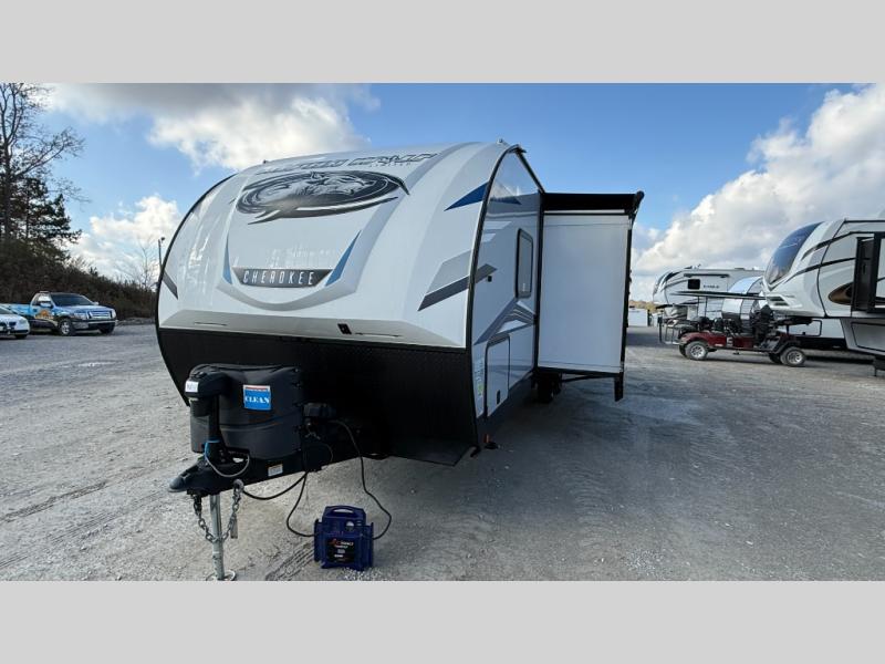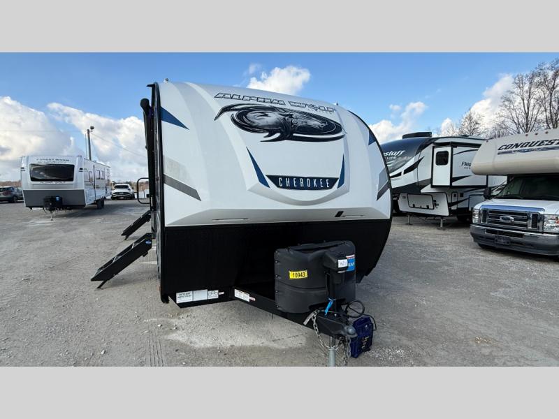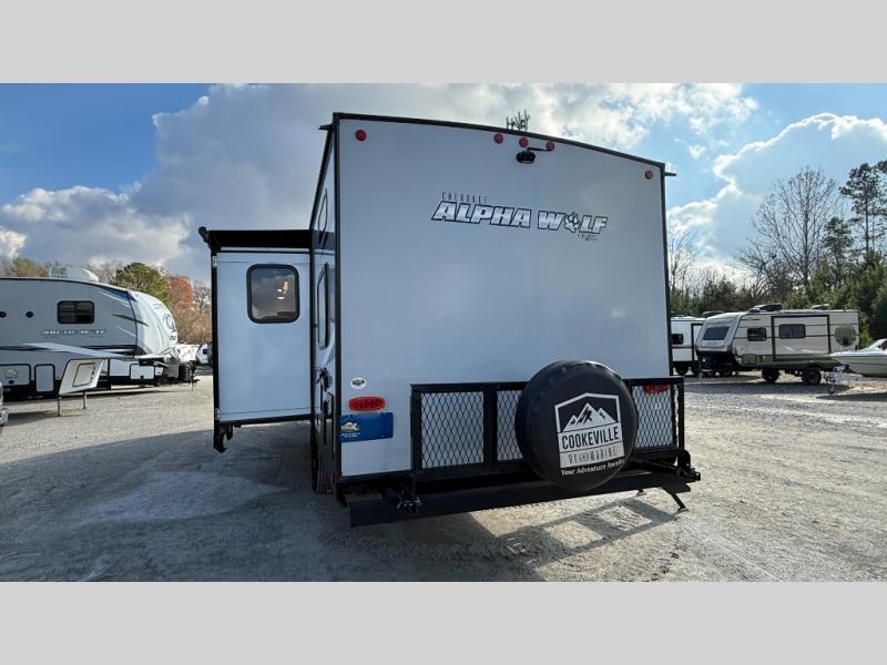 With every Forest River Cherokee Alpha Wolf travel trailer, you can enjoy off-grid camping with the Juice Pack solar power feature which includes a 50W roof mount panel, Series 27 battery, battery disconnect and box, volt meter and 30 Amp solar charger. The Juice Pack will continuously charge your battery bank and power your entire 12V electrical system including your Cannon refrigerator. With good sun your refrigerator will run for 60+ hours. Some other highlights include Zebra shades in the main living area, a motion sensing night light in the bathroom, plus deluxe furniture and bedding including a super-plush Evergreen mattress for your comfort. Each unit is constructed using a one-piece fiberglass, gel-coated, front cap with LED strip lights, an engineered wood "SuperTruss" roof structure, and "ToughBend" rigid skirt metal making each Alpha Wolf more aerodynamic and having increased structural strength. Be the Alpha in your group, choose your very own Cherokee Alpha Wolf trailer today!