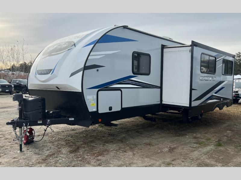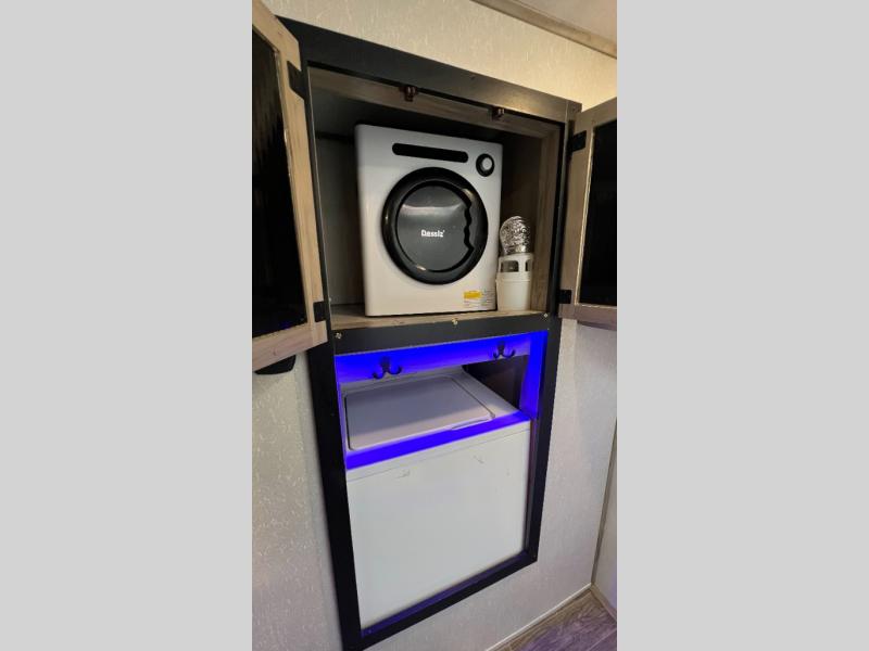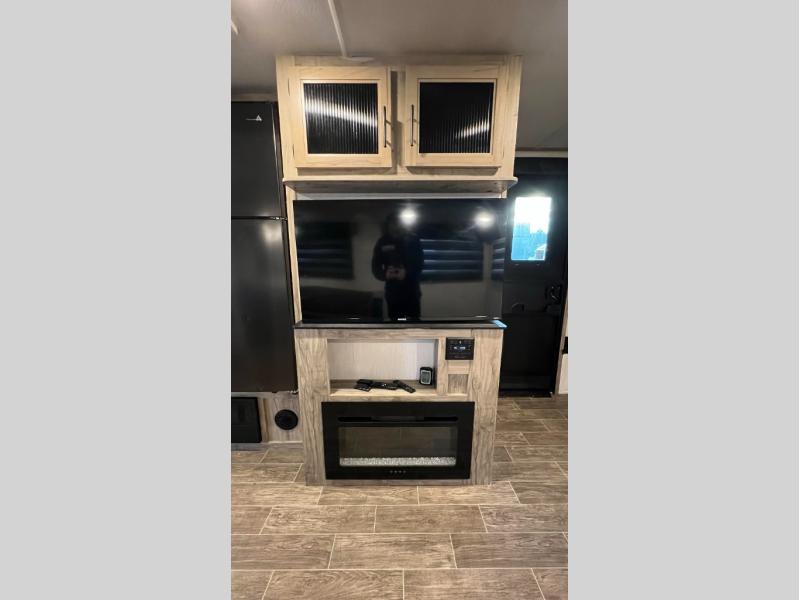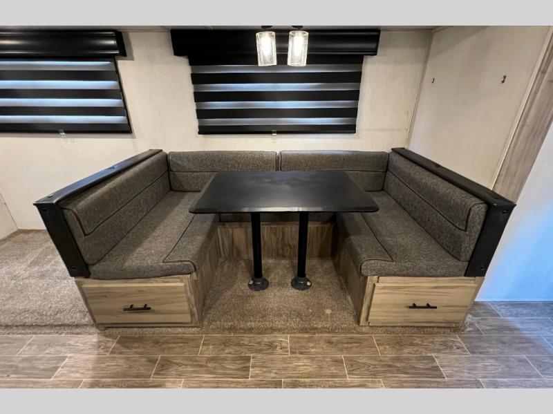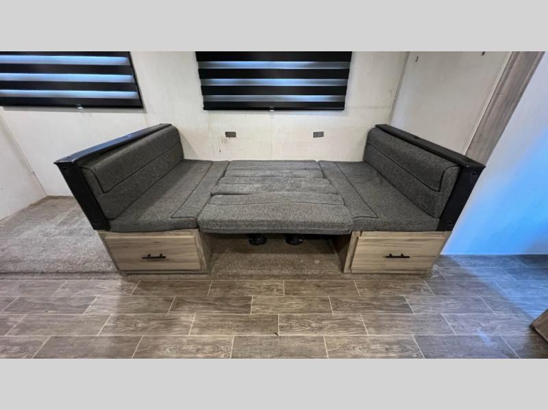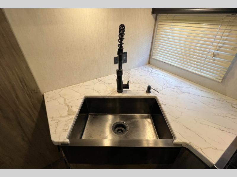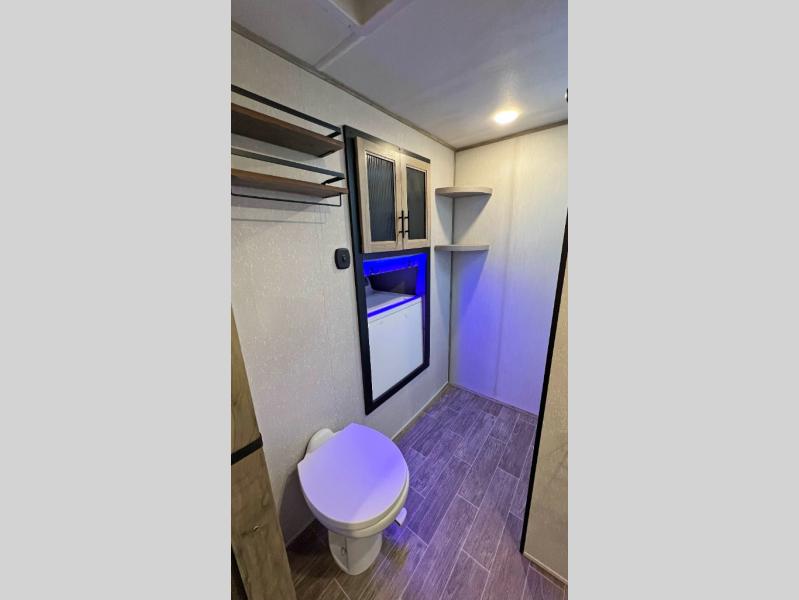 Whether you are a couple or family, this trailer will allow you to seek adventure and enjoy relaxation after hiking, fishing, and visiting with other RVers. The 20' exterior awning gives you an outdoor living area, the pass-through storage provides space for all your gear plus some. The interior is spacious thanks to the slide out in the main area that offers furniture to relax on, dine at, and even sleep on. You will also find an oversized rear bath with a barn-style entry door, and a robe/towel drop zone with linen storage above. The chef will love the walk-in pantry for non-perishables, the residential refrigerator, dual pots and pans drawers, and a farm-style sink. And the front bedroom offers an oasis through a barn-style door to enjoy a queen bed and clothing storage.