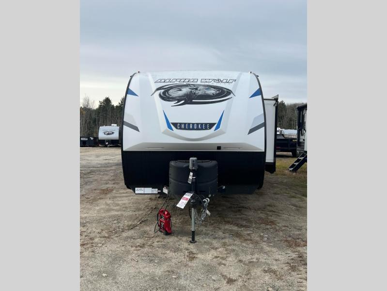 With every Forest River Cherokee Alpha Wolf travel trailer, you can enjoy off-grid camping with the Juice Pack solar power feature which includes a 50W roof mount panel, Series 27 battery, battery disconnect and box, volt meter and 30 Amp solar charger. The Juice Pack will continuously charge your battery bank and power your entire 12V electrical system including your Cannon refrigerator. With good sun your refrigerator will run for 60+ hours. Some other highlights include Zebra shades in the main living area, a motion sensing night light in the bathroom, plus deluxe furniture and bedding including a super-plush Evergreen mattress for your comfort. Each unit is constructed using a one-piece fiberglass, gel-coated, front cap with LED strip lights, an engineered wood "SuperTruss" roof structure, and "ToughBend" rigid skirt metal making each Alpha Wolf more aerodynamic and having increased structural strength. Be the Alpha in your group, choose your very own Cherokee Alpha Wolf trailer today!
