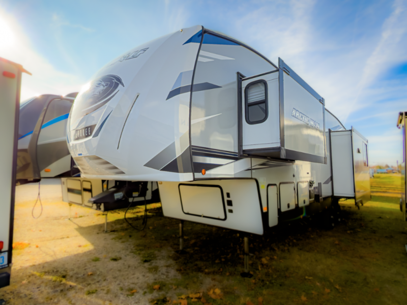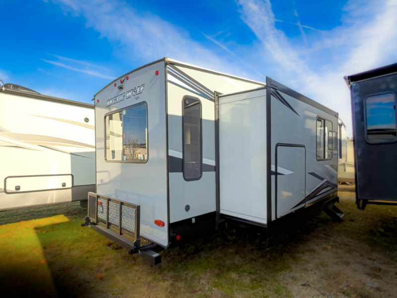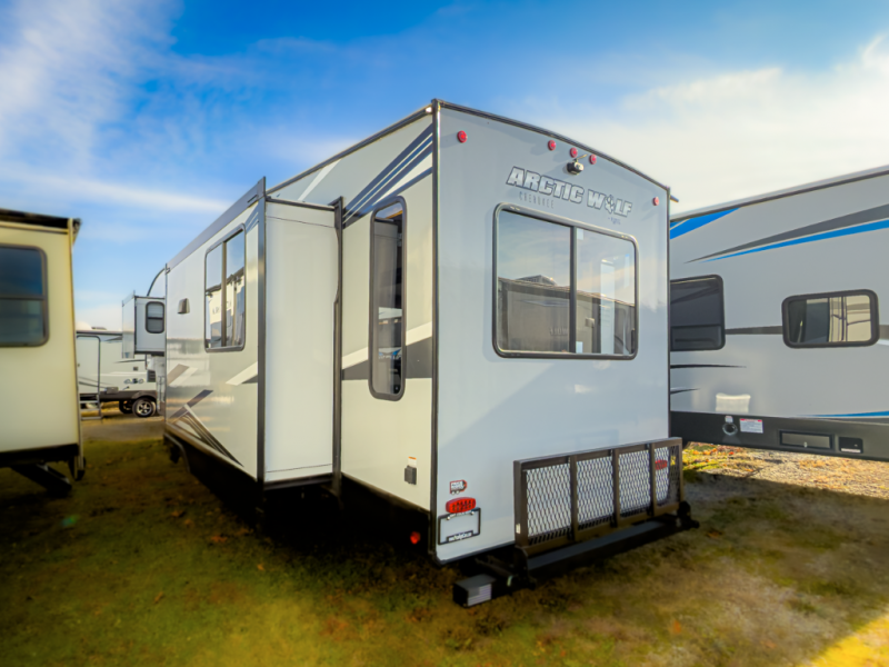 Arctic Wolf 3550 Suite with residential rear living, opposing slides, king-bedroom comfort, and climate-ready construction built for spacious, four-season Michigan camping.