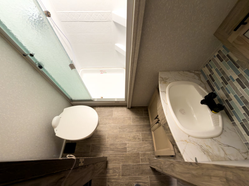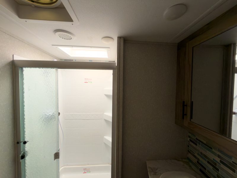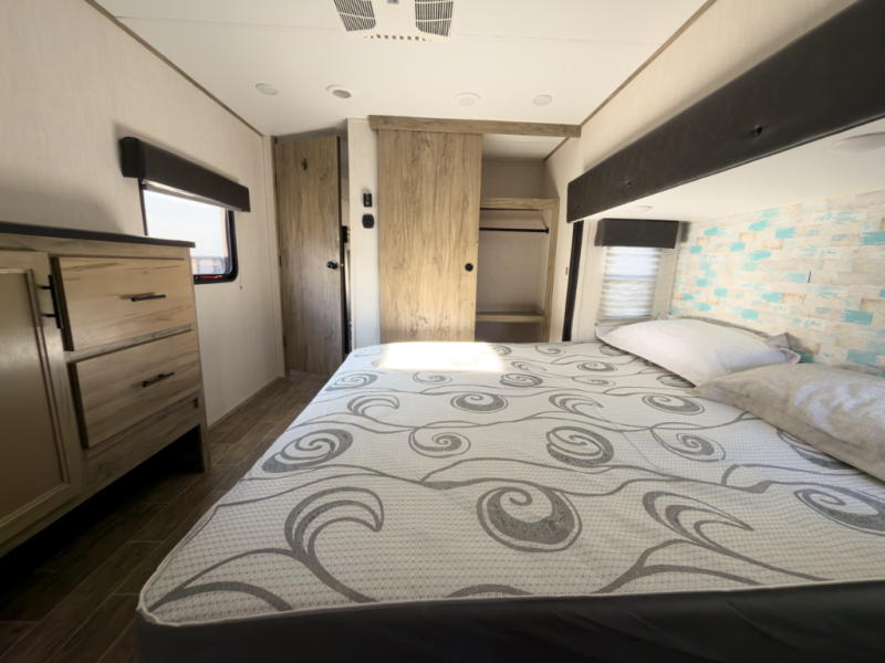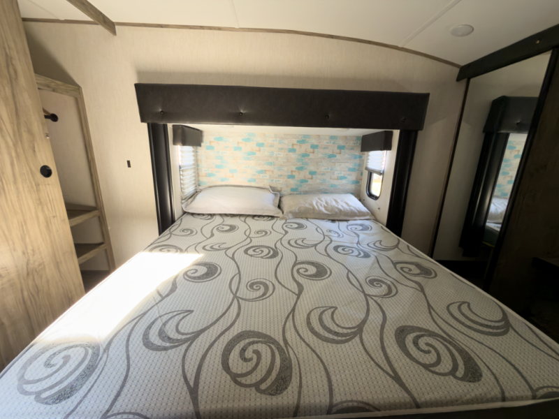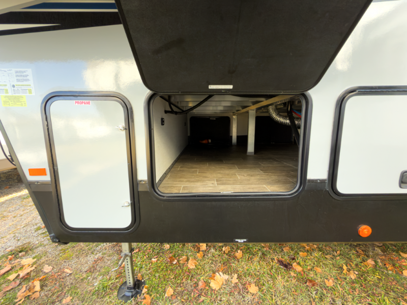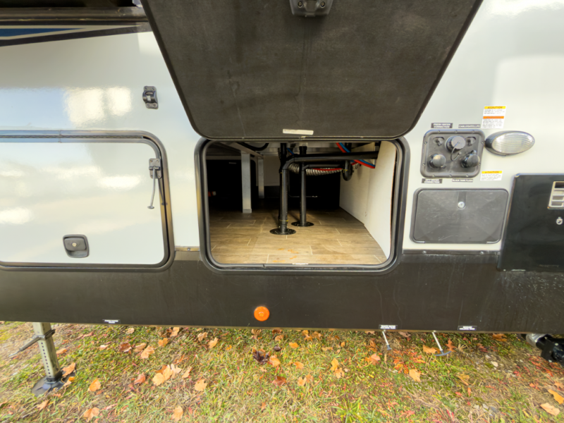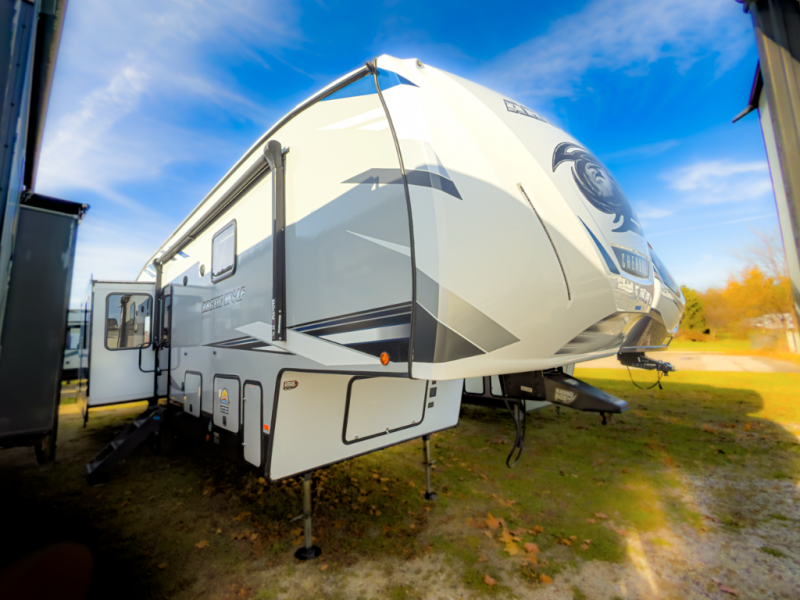 You will have amazing residential comfort in the Forest River Cherokee Arctic Wolf Suite fifth wheels! These units have a “SuperStor” dual-cavern basement storage compartment to allow you to bring more gear, and they have been constructed with a “ToughBend” rigid skirt metal design, a 1x engineered wood “SuperTruss” roof structure with 3/8" decking, and a 5/8” tongue-and-groove plywood floor decking. Each model includes Leash Latch pet safety technology, an outside shower with hot/cold water, preparations for an exterior TV, motion-sensing lighting, and a smart monitor panel with smart phone Bluetooth connectivity. The supersized central air conditioning unit (15,000 BTU) with quick cool air dump feature and second oversized 15,000 BTU ducted air conditioner will cool your unit down in a snap when you camp in the hot summer months.