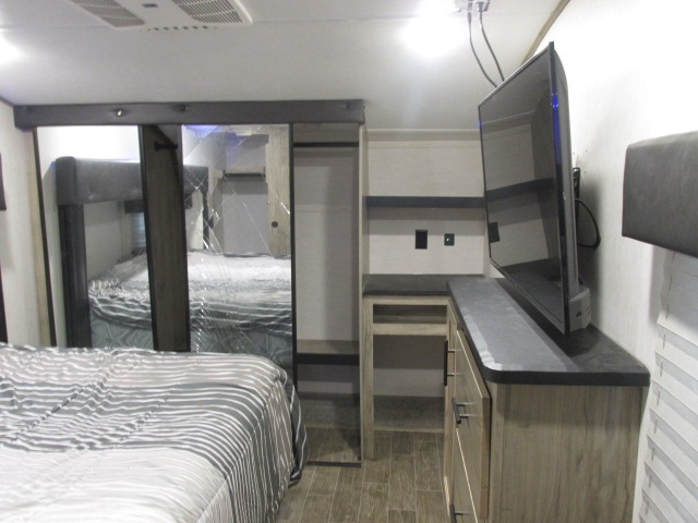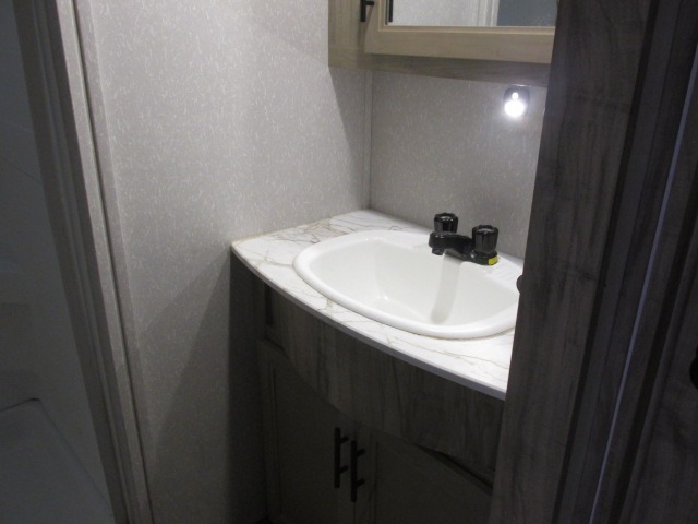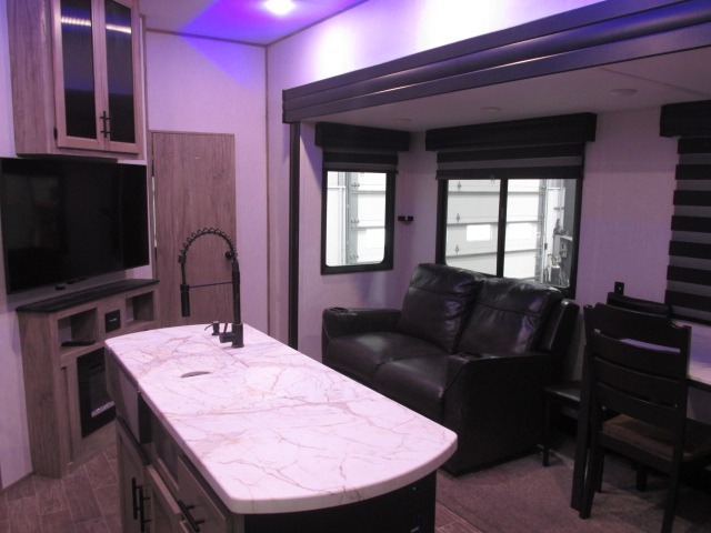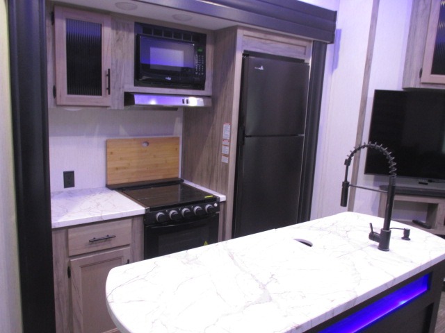You will have amazing residential comfort in the Forest River Cherokee Arctic Wolf Suite fifth wheels! These units have a “SuperStor” dual-cavern basement storage compartment to allow you to bring more gear, and they have been constructed with a “ToughBend” rigid skirt metal design, a 1x engineered wood “SuperTruss” roof structure with 3/8" decking, and a 5/8” tongue-and-groove plywood floor decking. Each model includes Leash Latch pet safety technology, an outside shower with hot/cold water, preparations for an exterior TV, motion-sensing lighting, and a smart monitor panel with smart phone Bluetooth connectivity. The supersized central air conditioning unit (15,000 BTU) with quick cool air dump feature and second oversized 15,000 BTU ducted air conditioner will cool your unit down in a snap when you camp in the hot summer months.