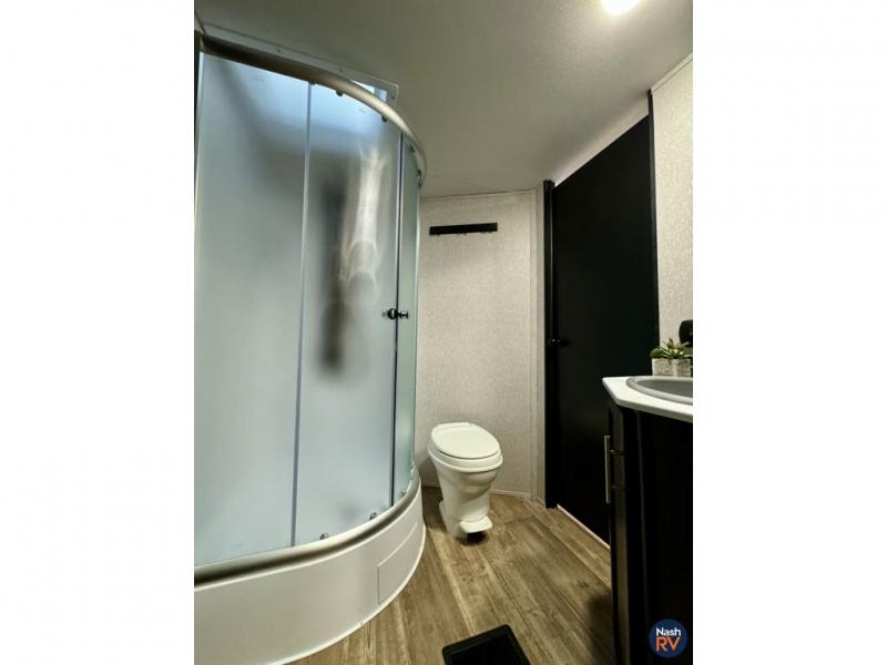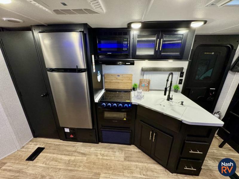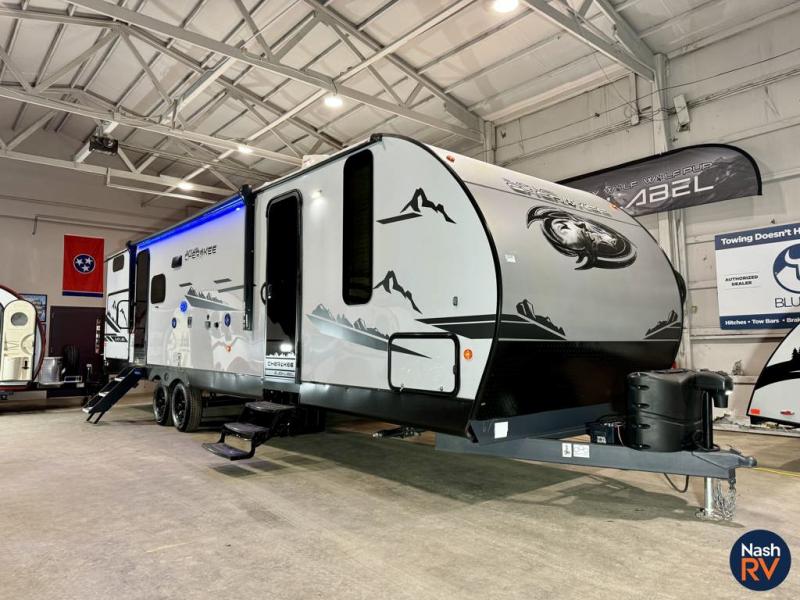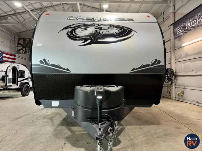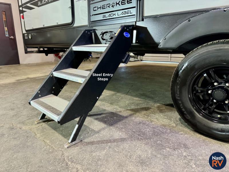 With any Cherokee Black Label by Forest River, there is Power Gear frame technology and space saver rail design, a seamless roofing membrane with heat reflectivity, a supersize, central air conditioning unit with quick cool air dump feature, and an armored underbelly tank enclosure. Some of the additional features provided by for Black Label models include an LG solid surface countertop, a pillowtop mattress, and designer fabric, plus a battery disconnect, a battery minder, and a power tongue jack. Choose comfort and style, take home a Black Label travel trailer or toy hauler today!