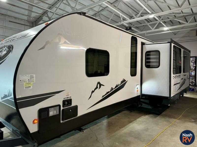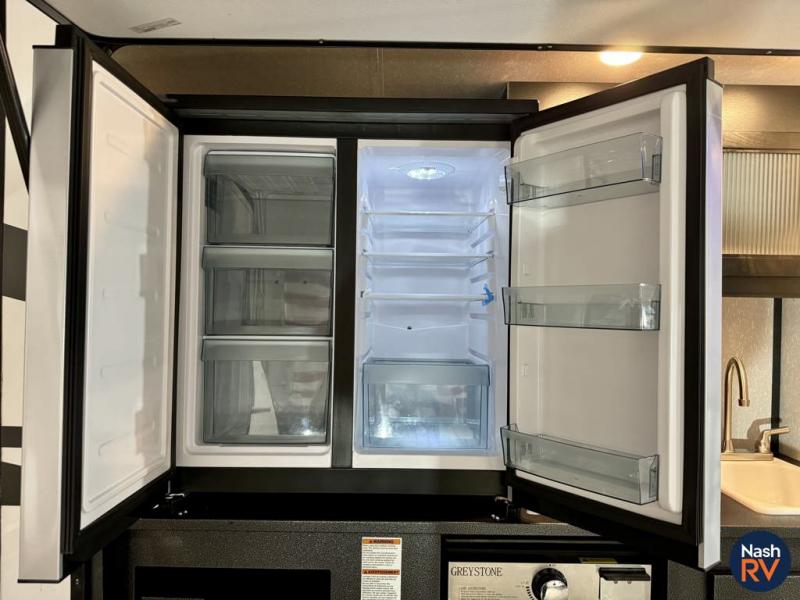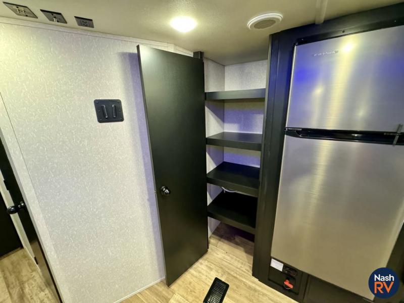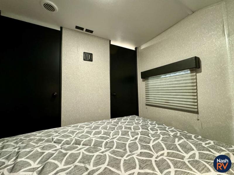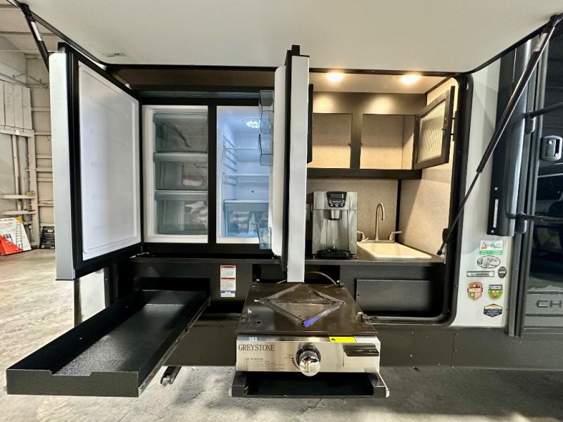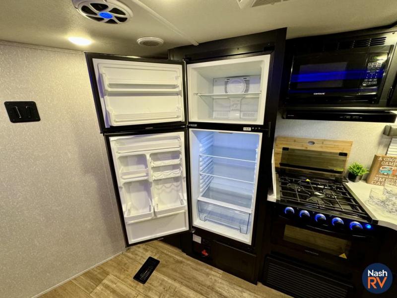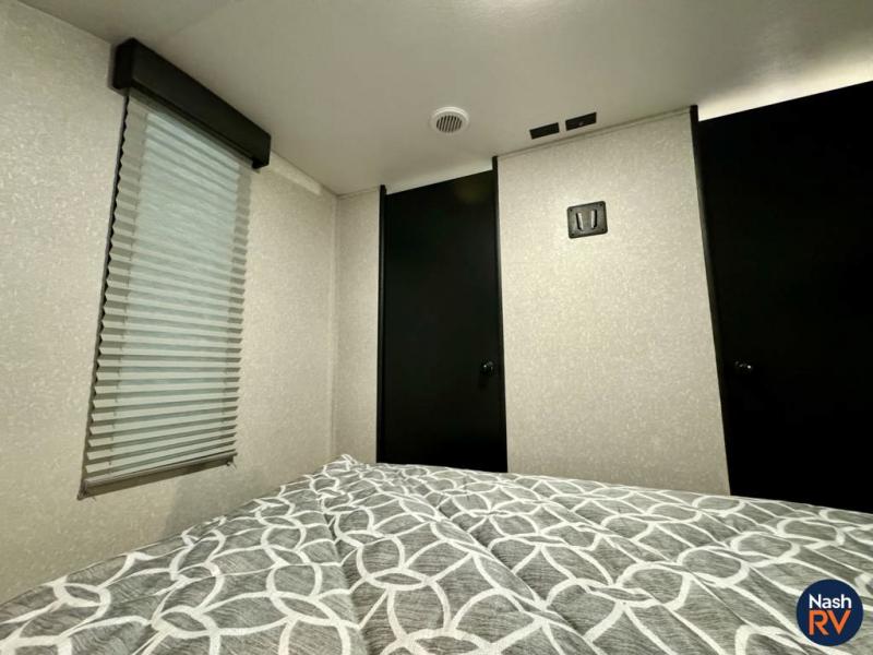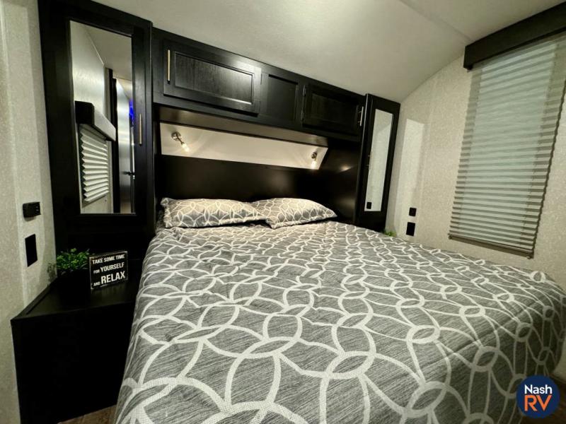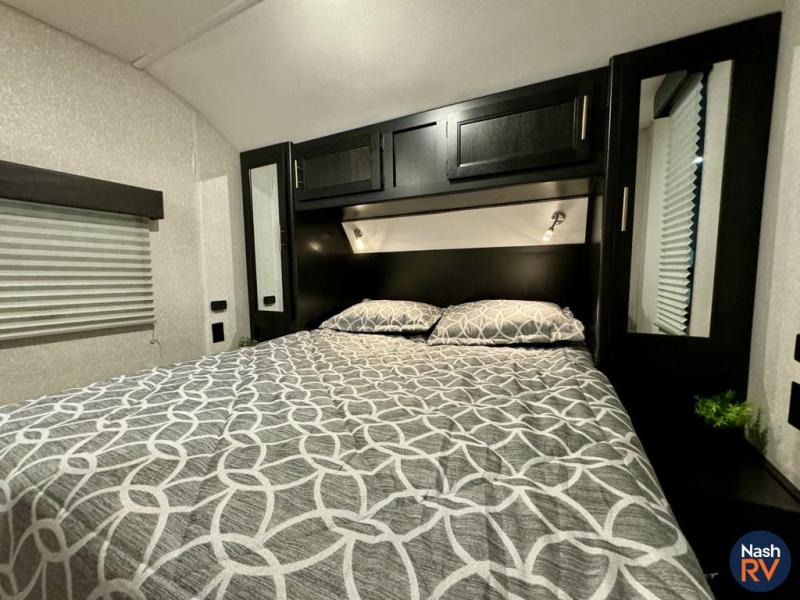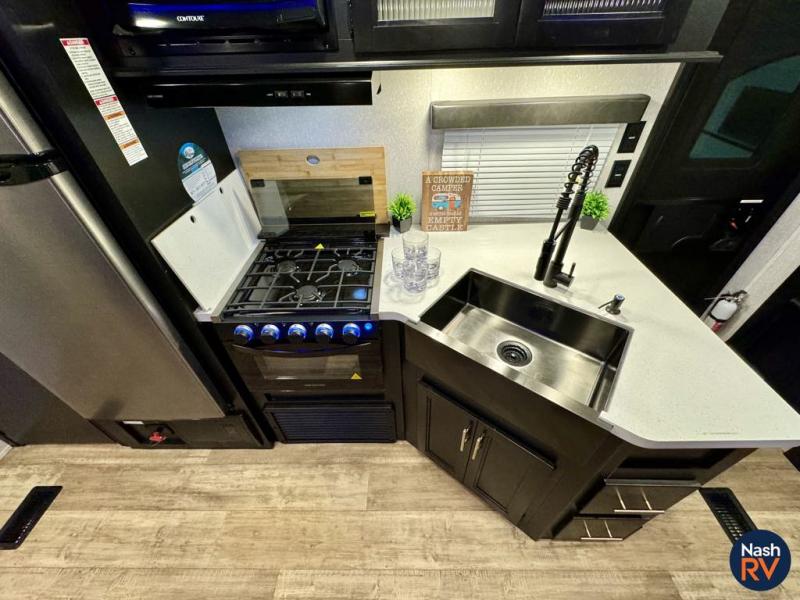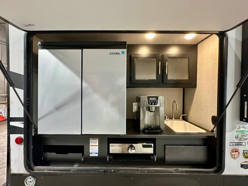 How does having a master bedroom for yourself, a bunkhouse for your oldest kiddo and a loft area for two more kids sound in your next travel trailer? This innovated design gives everyone their own space at night with a full queen loft bed, a 36" bunk bed and a walk-around queen bed, plus the U-shaped dinette and sofa provide more sleeping space. Everyone will enjoy the fireplace on chilly nights and the cook will love all the kitchen appliances including the large pantry and farm sink. The outdoor bar and grill with a side-by-side refrigerator and freezer, an ice maker, a pull-out cooktop, a sink and large storage areas are a must have when you love to be outside.