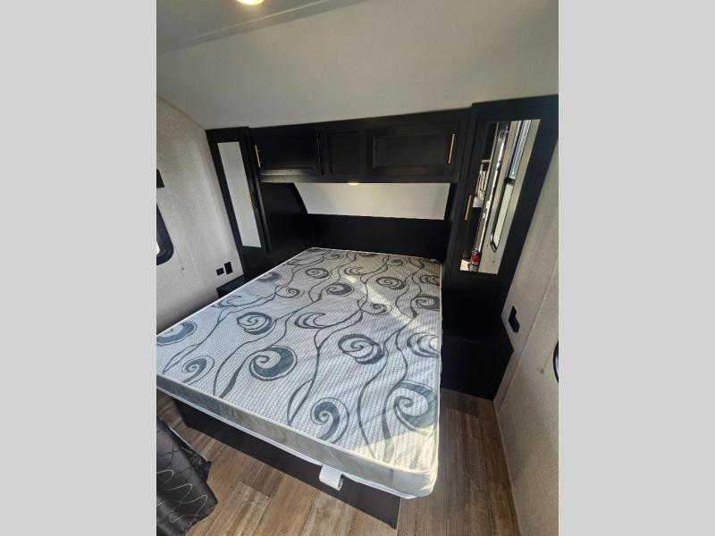 You and your favorite person will love this Cherokee Grey Wolf travel trailer for any weekend excursions away from home. The large U-shaped dinette in the rear of the unit makes it easy to invite fellow campers in for an evening snack and a card game or two. It can also easily accommodate extra overnight guests as the dinette folds down to create additional sleeping space for two. The queen bed up front can be made a bit more private with the privacy curtain that can be pulled at night, and the full bath which is right across from the entry door is easily accessible from outside. There are plenty of storage options with the overhead cabinets, the pantry, and the wardrobes inside, plus there is also outside storage!