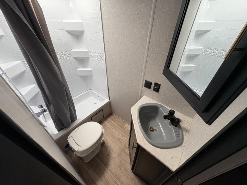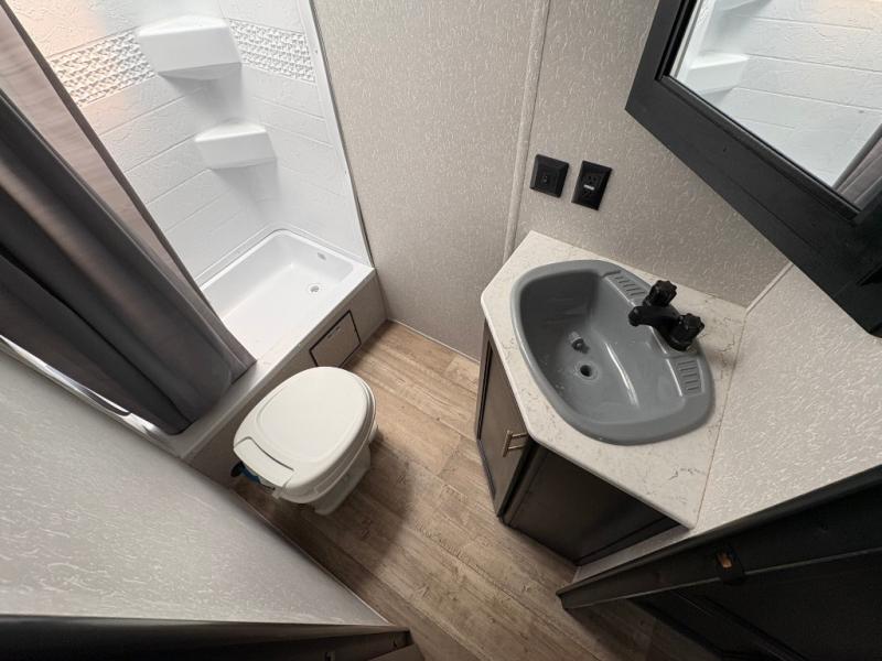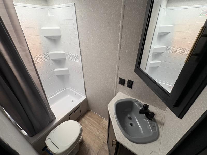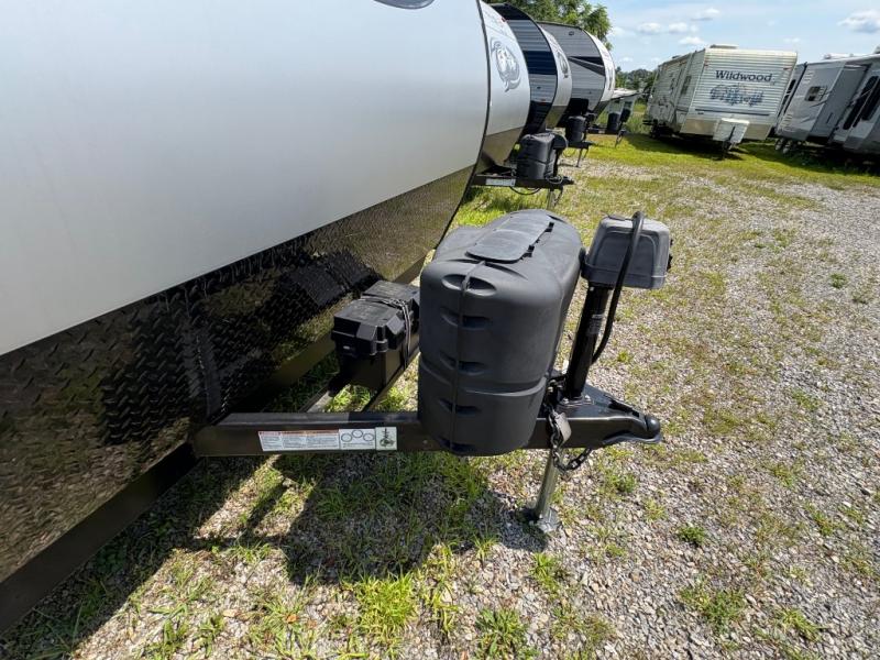 Whether it's a journey that will take you to new locations or a tried-and-true getaway to that favorite and memorable destination, the Forest River Cherokee Grey Wolf travel trailers and toy haulers are going to make the trip worth it every single time! You can travel in confidence with the premium wheel package, seamless roofing membrane with heat reflectivity, Power Gear frame technology with space-saver rail design, and Cherokee back-up camera system. The Cherokee Grey Wolf's interior is highly attractive with its stainless steel kitchen suite package, premium bedding ensemble and comforter, and 8" ceiling-mounted subwoofer with accent lighting. You will also find a black waste tank flush-out kit, an outside shower with hot and cold water, an armored underbelly tank enclosure, a power tongue jack, and an RV grill quick connect.