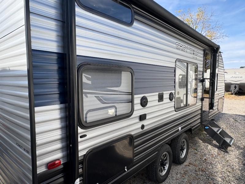 With this Cherokee Grey Wolf travel trailer, there are a set of double-size bunks that your kiddos are sure to love, and you will love having your own Cherokee Sleep System bed. The bed can be easily folded up to give you a full sofa. The location of the full bathroom in the back next to the bunk beds offers even more convenience, especially at night. This unit will give your larger family a great camping experience. You will find ample storage both inside and out with large overhead cabinets inside and wardrobes on either side of the front bed. On the outside, there are storage compartments for your exterior camping gear in both the front and rear making it easy to stow away outdoor camp chairs and games that you can enjoy while hanging out under the 15' power awning.
