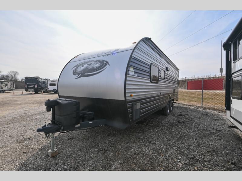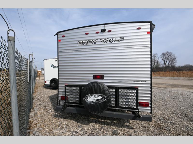 Whether it's a journey that will take you to new locations or a tried-and-true getaway to that favorite and memorable destination, the Forest River Cherokee Grey Wolf travel trailers and toy haulers are going to make the trip worth it every single time! You can travel in confidence with the premium wheel package, seamless roofing membrane with heat reflectivity, Power Gear frame technology with space-saver rail design, and Cherokee back-up camera system. The Cherokee Grey Wolf's interior is highly attractive with its stainless steel kitchen suite package, premium bedding ensemble and comforter, and 8" ceiling-mounted subwoofer with accent lighting. You will also find a black waste tank flush-out kit, an outside shower with hot and cold water, an armored underbelly tank enclosure, a power tongue jack, and an RV grill quick connect.