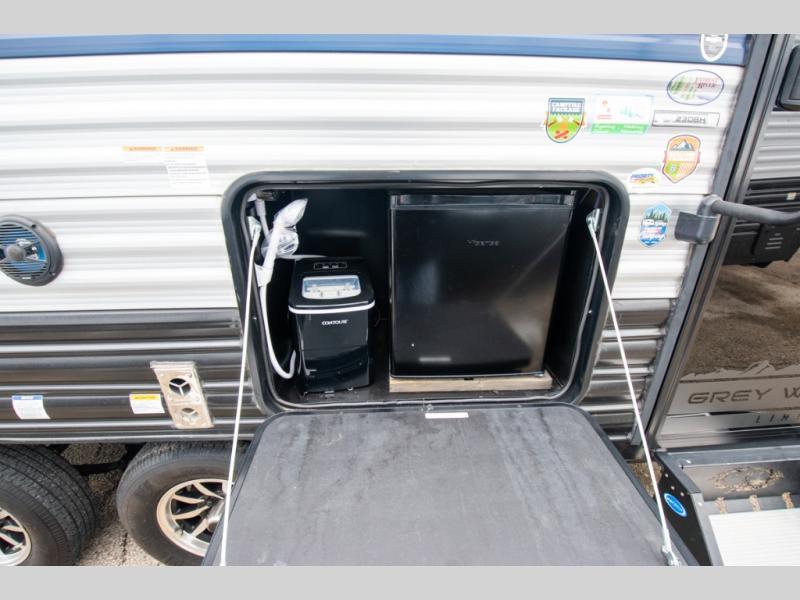 Whether it's a journey that will take you to new locations or a tried-and-true getaway to that favorite and memorable destination, the Forest River Cherokee Grey Wolf travel trailers and toy haulers are going to make the trip worth it every single time! You can travel in confidence with the premium wheel package, seamless roofing membrane with heat reflectivity, Power Gear frame technology with space-saver rail design, and Cherokee back-up camera system. The Cherokee Grey Wolf's interior is highly attractive with its stainless steel kitchen suite package, premium bedding ensemble and comforter, and 8" ceiling-mounted subwoofer with accent lighting. You will also find a black waste tank flush-out kit, an outside shower with hot and cold water, an armored underbelly tank enclosure, a power tongue jack, and an RV grill quick connect.