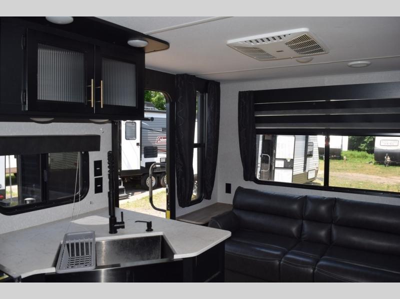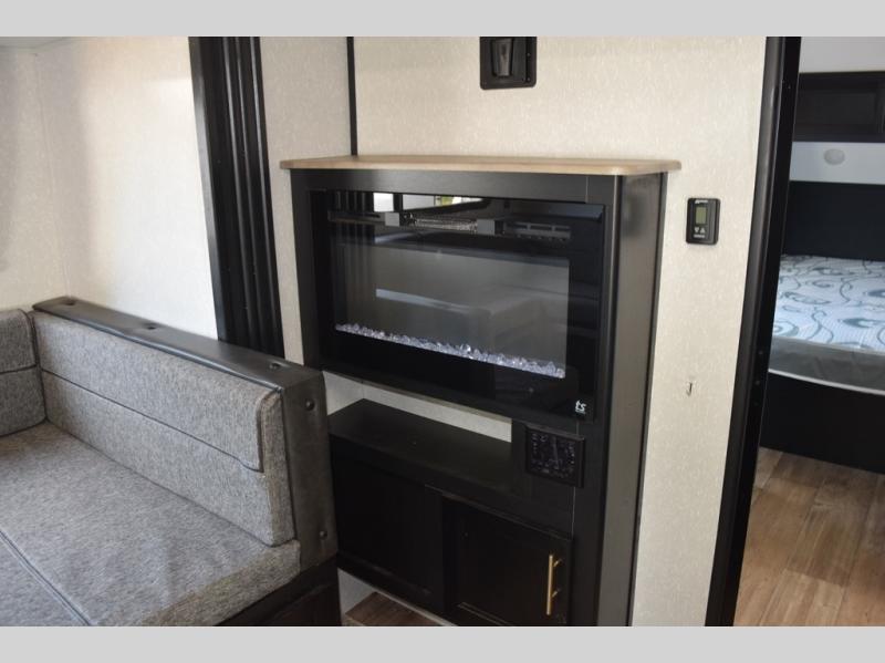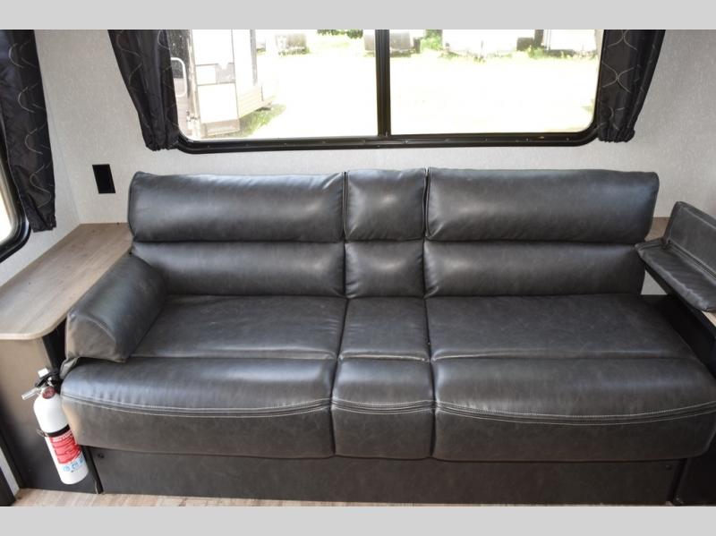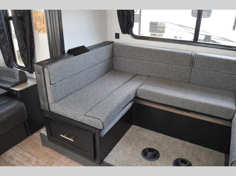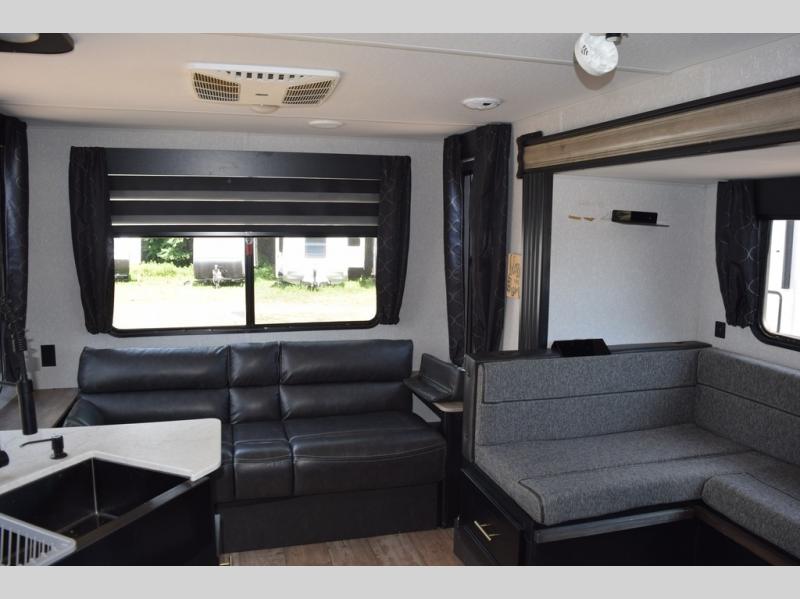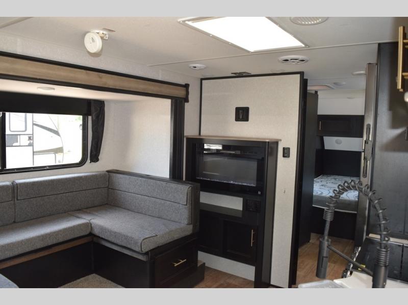 This Cherokee Grey Wolf travel trailer is perfect for your small family and will leave you planning your next outing before you are back from your current weekend away! You will find all of the comforts you need with plenty of livable space including a U-shaped dinette slide. There is also a sofa for more seating when company arrives, and there are end tables on either side to prevent spills. A spacious walk-through bath leads to a front private bedroom where you will enjoy a great night's rest on a comfortable queen-size bed. You will find ample storage for clothing in the wardrobes that are above handy nightstands for your personal things. There are even lights mounted above the bed on each side which makes it easy to read a couple of chapters before drifting off to sleep.