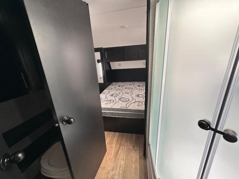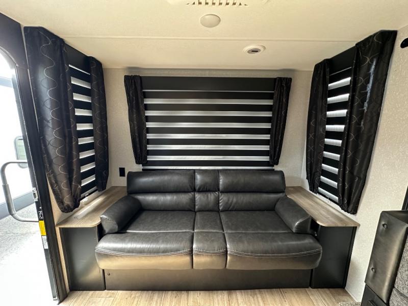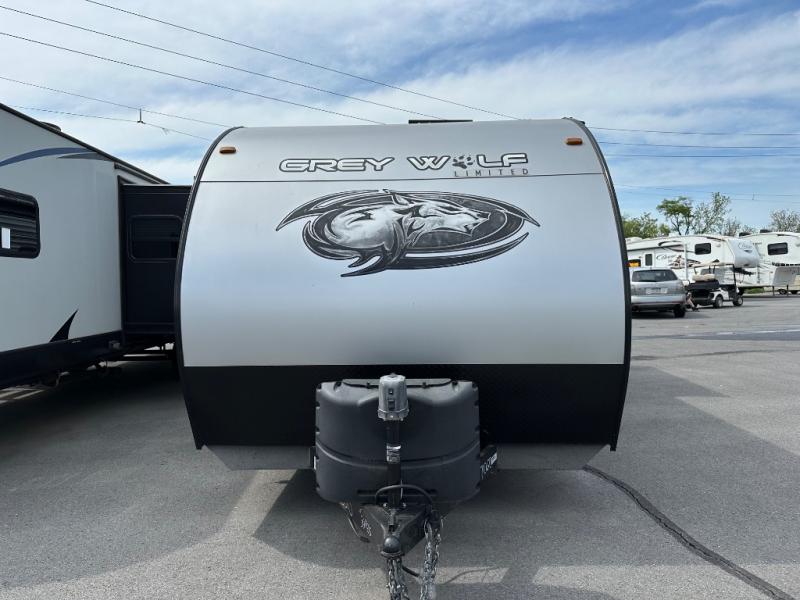 This Cherokee Grey Wolf travel trailer is perfect for your small family and will leave you planning your next outing before you are back from your current weekend away! You will find all of the comforts you need with plenty of livable space including a U-shaped dinette slide. There is also a sofa for more seating when company arrives, and there are end tables on either side to prevent spills. A spacious walk-through bath leads to a front private bedroom where you will enjoy a great night's rest on a comfortable queen-size bed. You will find ample storage for clothing in the wardrobes that are above handy nightstands for your personal things. There are even lights mounted above the bed on each side which makes it easy to read a couple of chapters before drifting off to sleep.