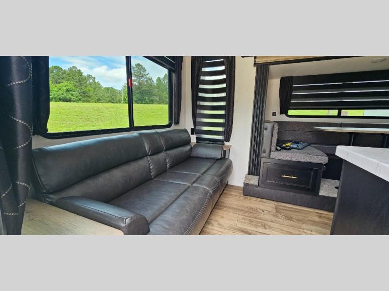 Whether it's a journey that will take you to new locations or a tried-and-true getaway to that favorite and memorable destination, the Forest River Cherokee Grey Wolf travel trailers and toy haulers are going to make the trip worth it every single time! You can travel in confidence with the premium wheel package, seamless roofing membrane with heat reflectivity, Power Gear frame technology with space-saver rail design, and Cherokee back-up camera system. The Cherokee Grey Wolf's interior is highly attractive with its stainless steel kitchen suite package, premium bedding ensemble and comforter, and 8" ceiling-mounted subwoofer with accent lighting. You will also find a black waste tank flush-out kit, an outside shower with hot and cold water, an armored underbelly tank enclosure, a power tongue jack, and an RV grill quick connect.