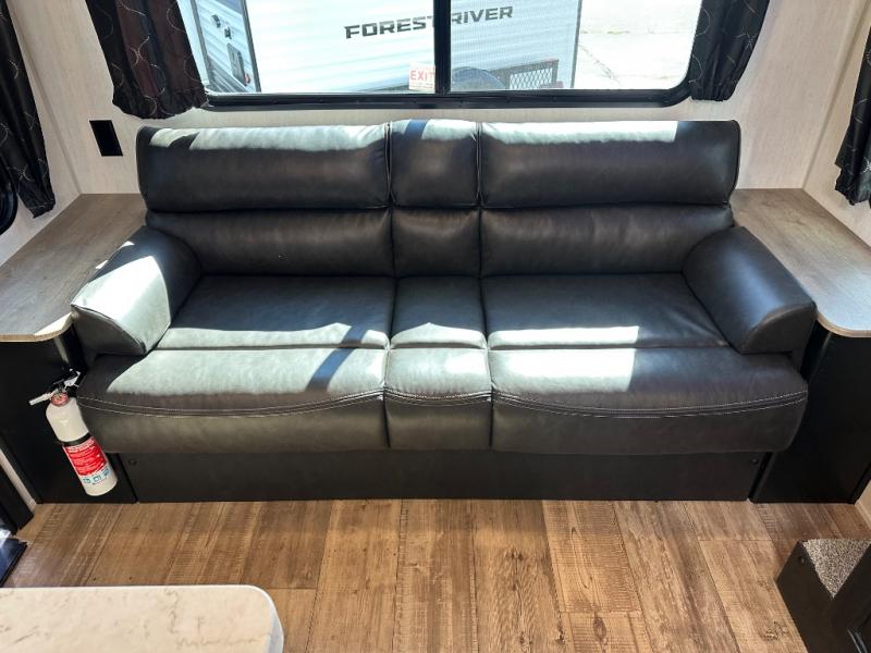 This Cherokee Grey Wolf travel trailer is perfect for your small family and will leave you planning your next outing before you are back from your current weekend away! You will find all of the comforts you need with plenty of livable space including a U-shaped dinette slide. There is also a sofa for more seating when company arrives, and there are end tables on either side to prevent spills. A spacious walk-through bath leads to a front private bedroom where you will enjoy a great night's rest on a comfortable queen-size bed. You will find ample storage for clothing in the wardrobes that are above handy nightstands for your personal things. There are even lights mounted above the bed on each side which makes it easy to read a couple of chapters before drifting off to sleep.
