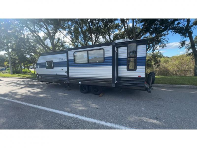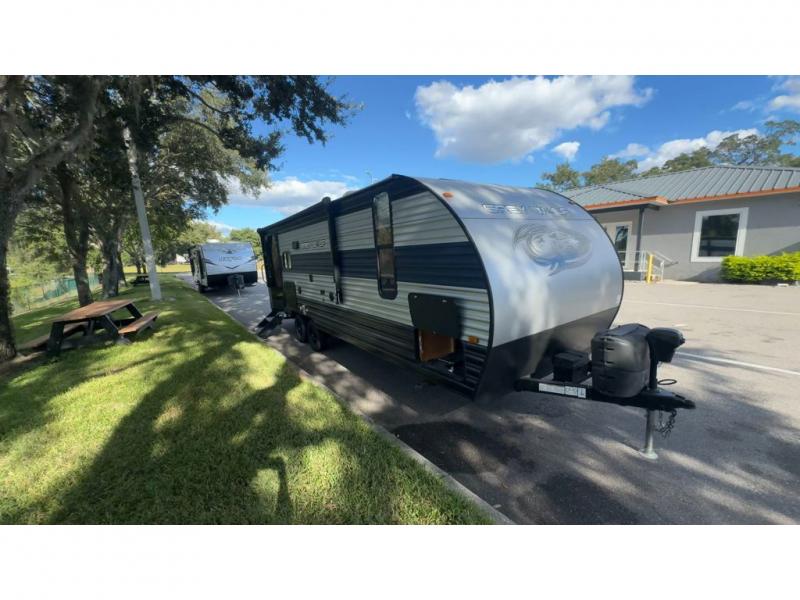 This Cherokee Grey Wolf travel trailer is perfect for your small family and will leave you planning your next outing before you are back from your current weekend away! You will find all of the comforts you need with plenty of livable space including a U-shaped dinette slide. There is also a sofa for more seating when company arrives, and there are end tables on either side to prevent spills. A spacious walk-through bath leads to a front private bedroom where you will enjoy a great night's rest on a comfortable queen-size bed. You will find ample storage for clothing in the wardrobes that are above handy nightstands for your personal things. There are even lights mounted above the bed on each side which makes it easy to read a couple of chapters before drifting off to sleep.