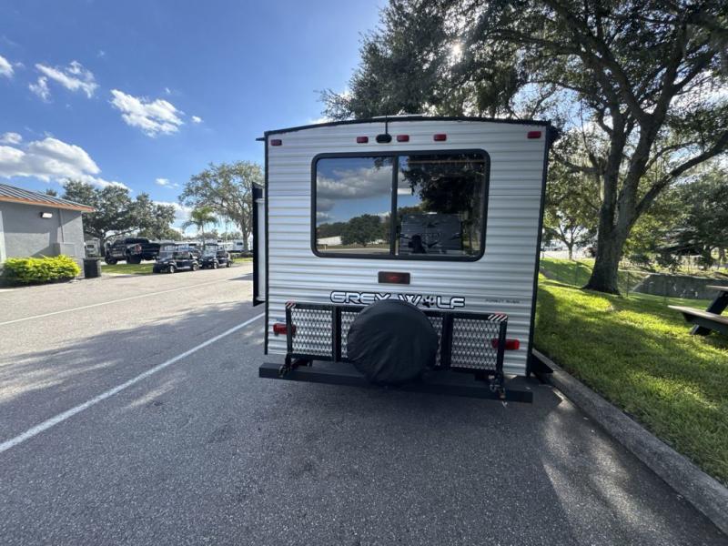 Whether it's a journey that will take you to new locations or a tried-and-true getaway to that favorite and memorable destination, the Forest River Cherokee Grey Wolf travel trailers and toy haulers are going to make the trip worth it every single time! You can travel in confidence with the premium wheel package, seamless roofing membrane with heat reflectivity, Power Gear frame technology with space-saver rail design, and Cherokee back-up camera system. The Cherokee Grey Wolf's interior is highly attractive with its stainless steel kitchen suite package, premium bedding ensemble and comforter, and 8" ceiling-mounted subwoofer with accent lighting. You will also find a black waste tank flush-out kit, an outside shower with hot and cold water, an armored underbelly tank enclosure, a power tongue jack, and an RV grill quick connect.