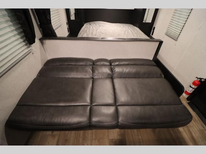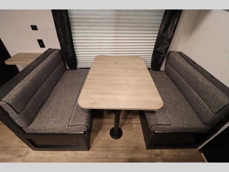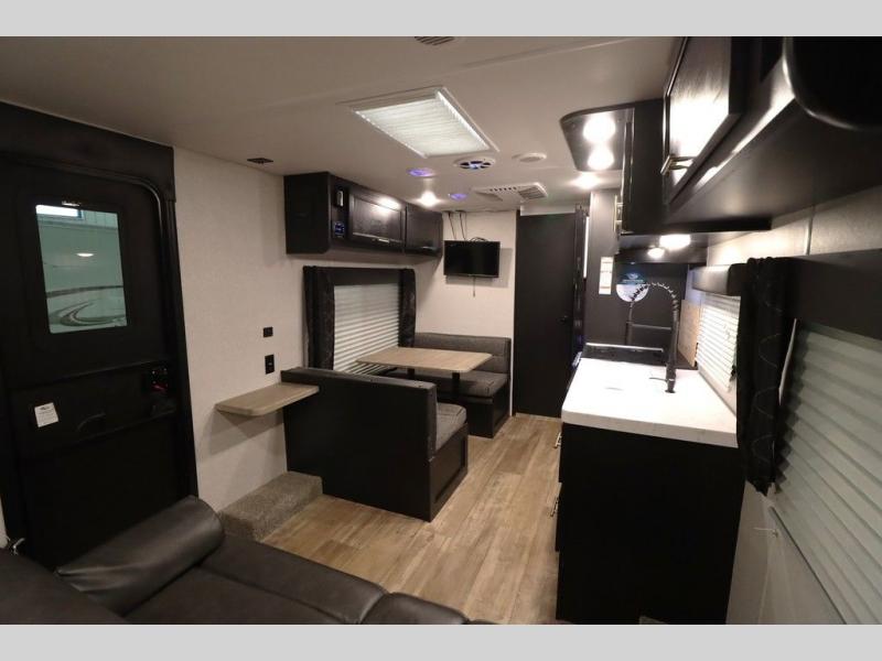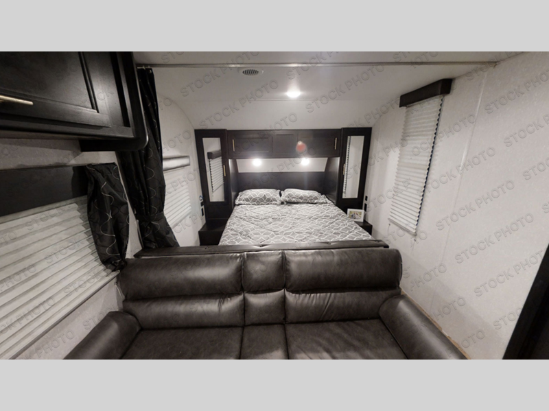 If you are ready to escape the hustle and bustle of life, then check out this Cherokee Grey Wolf travel trailer! It will take you to new destinations while still giving you the comforts of home. The front bedroom with a comfortable queen bed is a great place for you to unwind and recharge. There are even wardrobes and nightstands on either side of the bed to keep things neat and tidy. After you have cooked up your best meal with either the three-burner cooktop or the oven, you can enjoy it at the booth dinette. At the booth dinette, there is also a mount for you to add a TV which would be nice for those rainy days. The rear bath has everything you will need to get ready for your adventurous day, like the tub/shower with a skylight above and a wardrobe to keep things tidy and in one place!