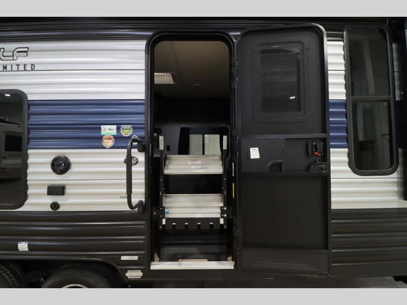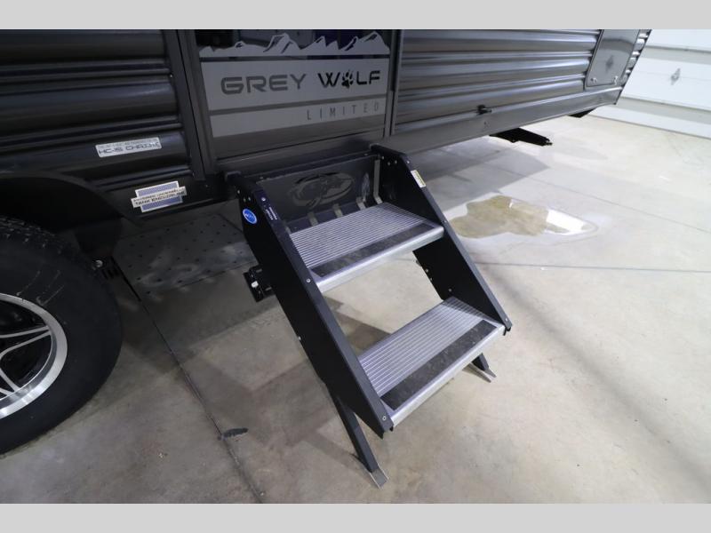 Whether it's a journey that will take you to new locations or a tried-and-true getaway to that favorite and memorable destination, the Forest River Cherokee Grey Wolf travel trailers and toy haulers are going to make the trip worth it every single time! You can travel in confidence with the premium wheel package, seamless roofing membrane with heat reflectivity, Power Gear frame technology with space-saver rail design, and Cherokee back-up camera system. The Cherokee Grey Wolf's interior is highly attractive with its stainless steel kitchen suite package, premium bedding ensemble and comforter, and 8" ceiling-mounted subwoofer with accent lighting. You will also find a black waste tank flush-out kit, an outside shower with hot and cold water, an armored underbelly tank enclosure, a power tongue jack, and an RV grill quick connect.
