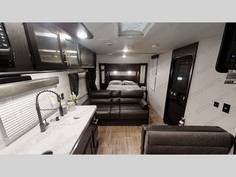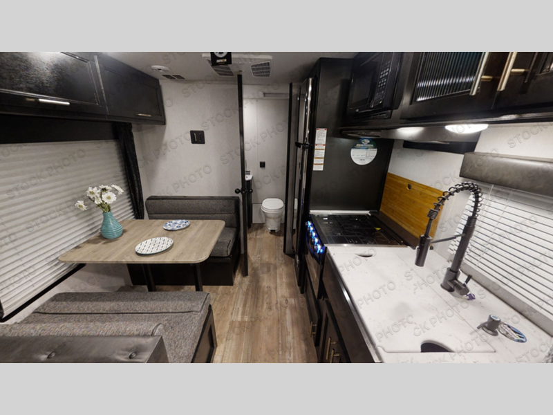 If you are ready to escape the hustle and bustle of life, then check out this Cherokee Grey Wolf travel trailer! It will take you to new destinations while still giving you the comforts of home. The front bedroom with a comfortable queen bed is a great place for you to unwind and recharge. There are even wardrobes and nightstands on either side of the bed to keep things neat and tidy. After you have cooked up your best meal with either the three-burner cooktop or the oven, you can enjoy it at the booth dinette. At the booth dinette, there is also a mount for you to add a TV which would be nice for those rainy days. The rear bath has everything you will need to get ready for your adventurous day, like the tub/shower with a skylight above and a wardrobe to keep things tidy and in one place!