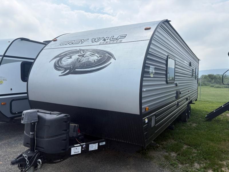 Whether it's a journey that will take you to new locations or a tried-and-true getaway to that favorite and memorable destination, the Forest River Cherokee Grey Wolf travel trailers and toy haulers are going to make the trip worth it every single time! You can travel in confidence with the premium wheel package, seamless roofing membrane with heat reflectivity, Power Gear frame technology with space-saver rail design, and Cherokee back-up camera system. The Cherokee Grey Wolf's interior is highly attractive with its stainless steel kitchen suite package, premium bedding ensemble and comforter, and 8" ceiling-mounted subwoofer with accent lighting. You will also find a black waste tank flush-out kit, an outside shower with hot and cold water, an armored underbelly tank enclosure, a power tongue jack, and an RV grill quick connect.