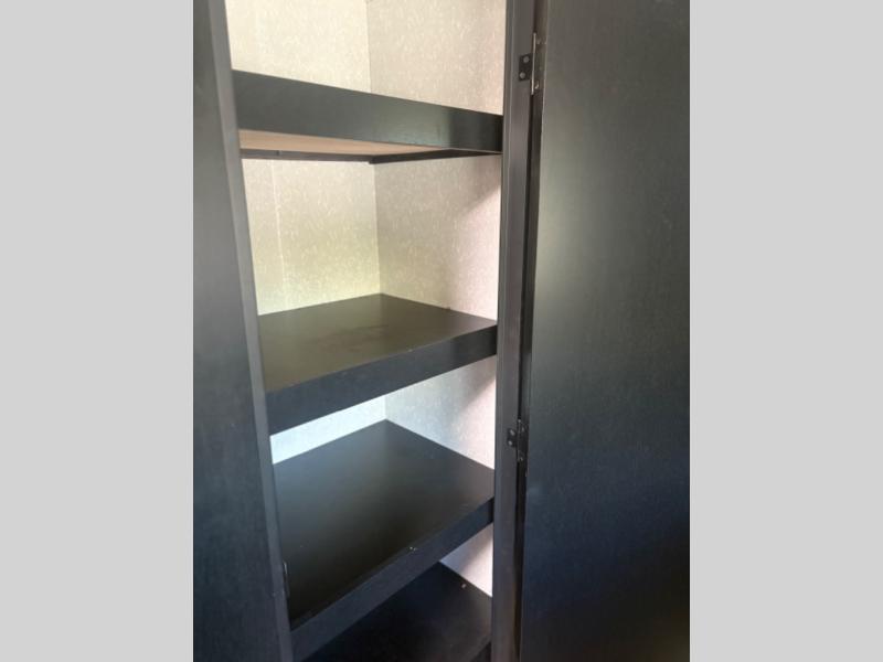 Come on inside this Cherokee Grey Wolf travel trailer and experience the convenience of a smooth flow of traffic in and out with two entry doors. The rear door leads into a full bath which is great for accessibility when outside and when you need to use the bathroom. Once inside, you will notice the large U-shaped dinette and the sofa which sit on the slide and create a spacious footprint for moving about, as well as great places to play games and socialize with your friends and family. A walk-in pantry provides plenty of storage allowing you to stock up on your favorite snacks and dry goods for your family adventure. At night, there is sleeping space for everyone between the double-size bunks and the queen-size bed, plus the furniture.