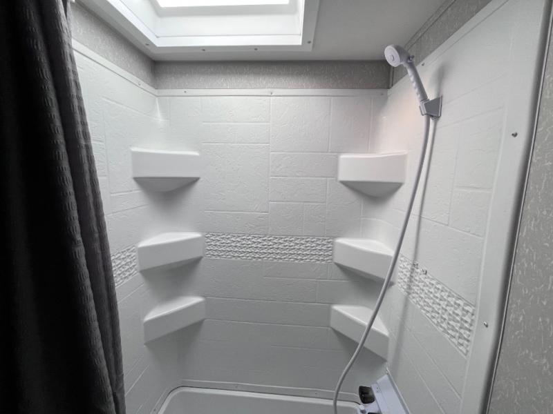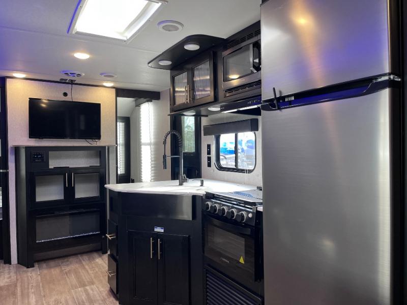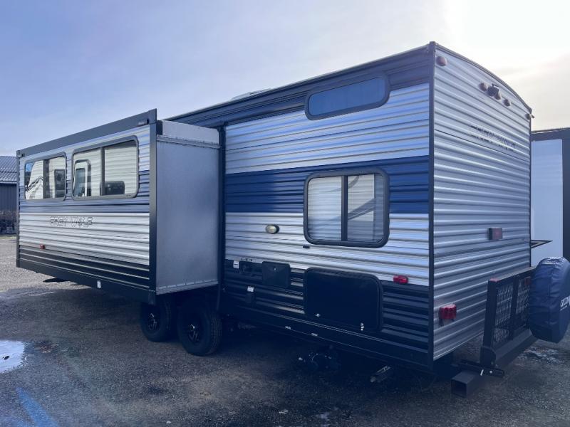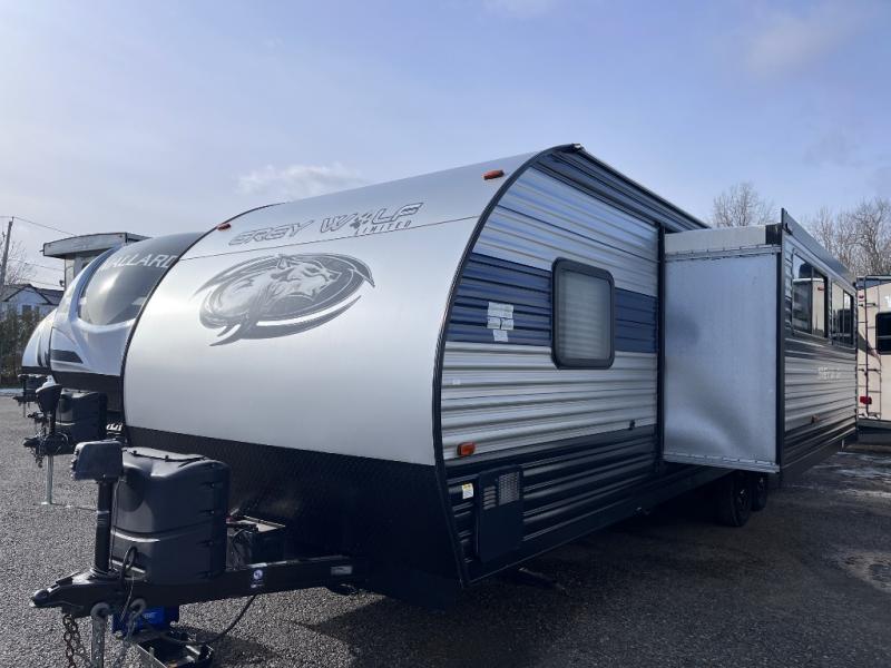 Whether it's a journey that will take you to new locations or a tried-and-true getaway to that favorite and memorable destination, the Forest River Cherokee Grey Wolf travel trailers and toy haulers are going to make the trip worth it every single time! You can travel in confidence with the premium wheel package, seamless roofing membrane with heat reflectivity, Power Gear frame technology with space-saver rail design, and Cherokee back-up camera system. The Cherokee Grey Wolf's interior is highly attractive with its stainless steel kitchen suite package, premium bedding ensemble and comforter, and 8" ceiling-mounted subwoofer with accent lighting. You will also find a black waste tank flush-out kit, an outside shower with hot and cold water, an armored underbelly tank enclosure, a power tongue jack, and an RV grill quick connect.