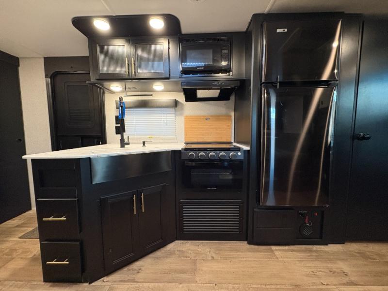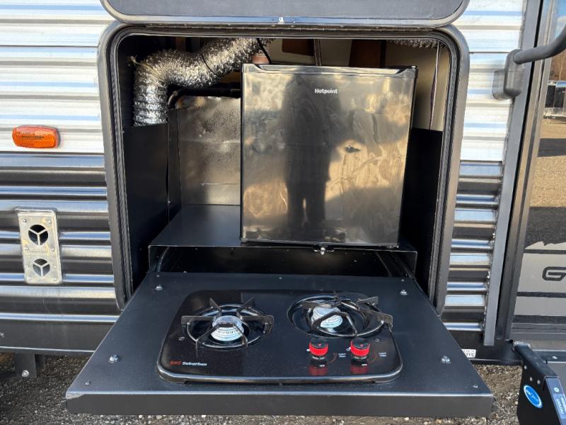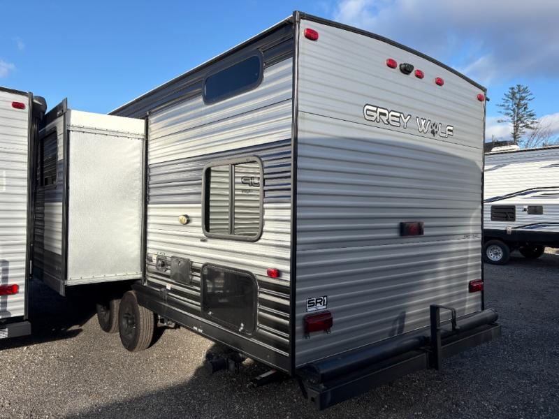 Whether it's a journey that will take you to new locations or a tried-and-true getaway to that favorite and memorable destination, the Forest River Cherokee Grey Wolf travel trailers and toy haulers are going to make the trip worth it every single time! You can travel in confidence with the premium wheel package, seamless roofing membrane with heat reflectivity, Power Gear frame technology with space-saver rail design, and Cherokee back-up camera system. The Cherokee Grey Wolf's interior is highly attractive with its stainless steel kitchen suite package, premium bedding ensemble and comforter, and 8" ceiling-mounted subwoofer with accent lighting. You will also find a black waste tank flush-out kit, an outside shower with hot and cold water, an armored underbelly tank enclosure, a power tongue jack, and an RV grill quick connect.