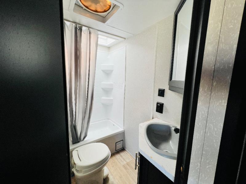 Whether it's a journey that will take you to new locations or a tried-and-true getaway to that favorite and memorable destination, the Forest River Cherokee Grey Wolf travel trailers and toy haulers are going to make the trip worth it every single time! You can travel in confidence with the premium wheel package, seamless roofing membrane with heat reflectivity, Power Gear frame technology with space-saver rail design, and Cherokee back-up camera system. The Cherokee Grey Wolf's interior is highly attractive with its stainless steel kitchen suite package, premium bedding ensemble and comforter, and 8" ceiling-mounted subwoofer with accent lighting. You will also find a black waste tank flush-out kit, an outside shower with hot and cold water, an armored underbelly tank enclosure, a power tongue jack, and an RV grill quick connect.