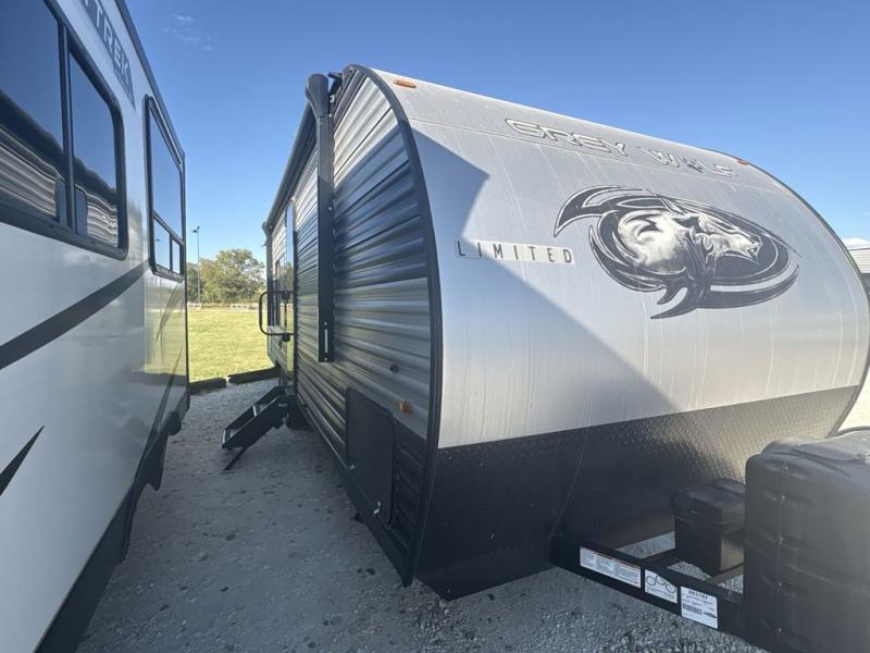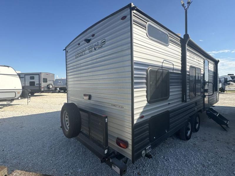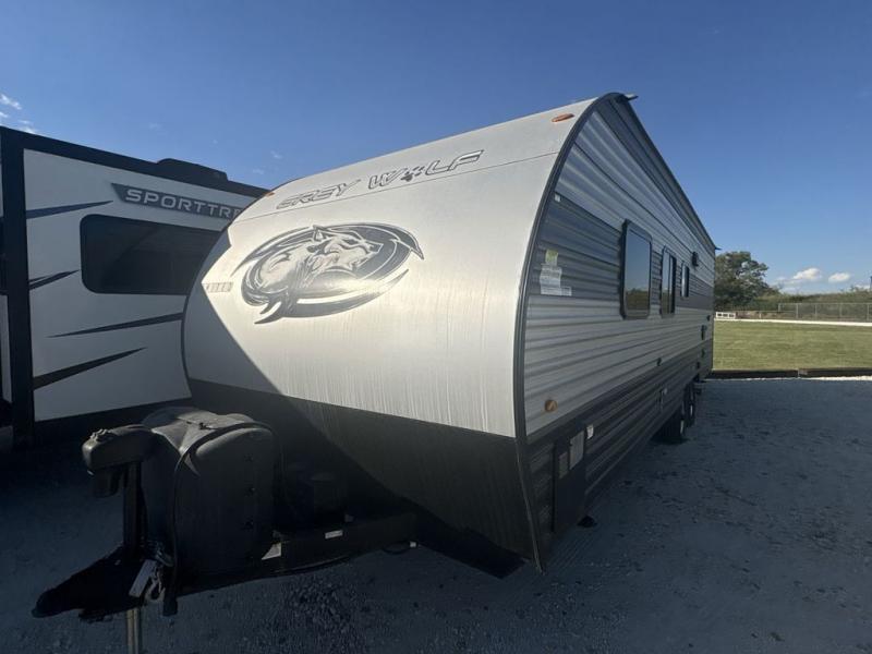 Whether it's a journey that will take you to new locations or a tried-and-true getaway to that favorite and memorable destination, the Forest River Cherokee Grey Wolf travel trailers and toy haulers are going to make the trip worth it every single time! You can travel in confidence with the premium wheel package, seamless roofing membrane with heat reflectivity, Power Gear frame technology with space-saver rail design, and Cherokee back-up camera system. The Cherokee Grey Wolf's interior is highly attractive with its stainless steel kitchen suite package, premium bedding ensemble and comforter, and 8" ceiling-mounted subwoofer with accent lighting. You will also find a black waste tank flush-out kit, an outside shower with hot and cold water, an armored underbelly tank enclosure, a power tongue jack, and an RV grill quick connect.