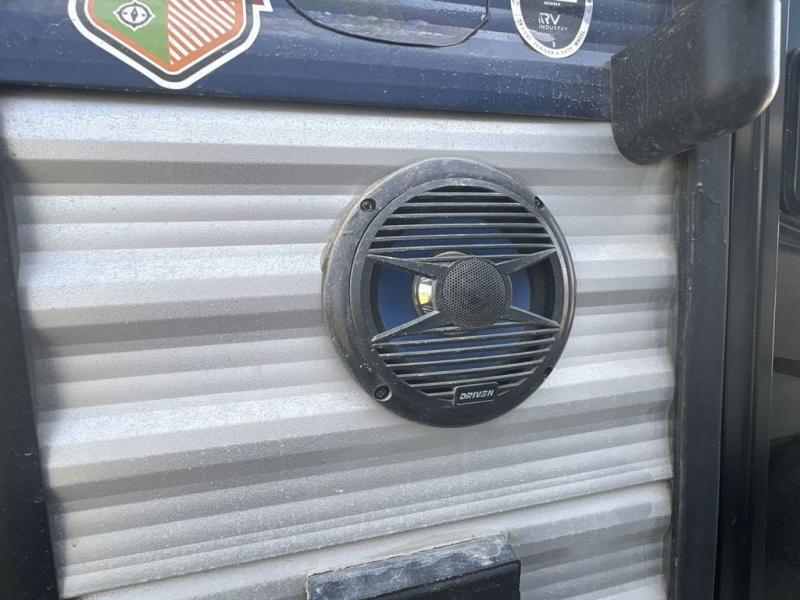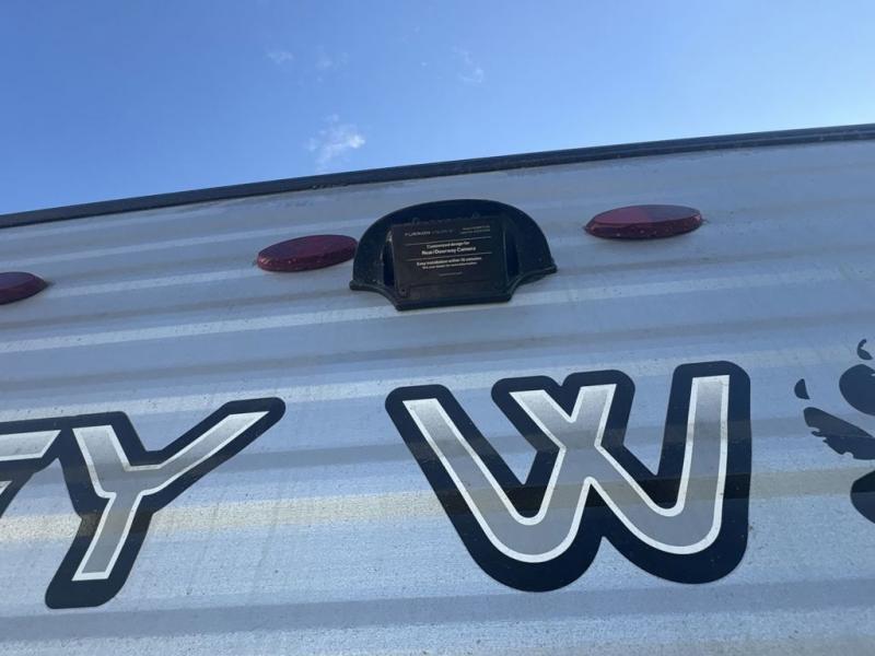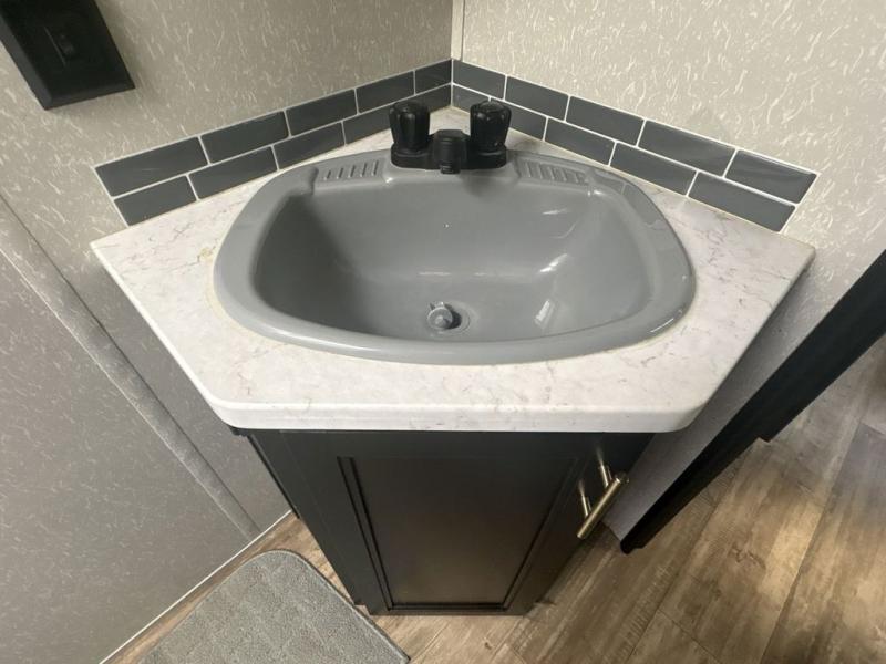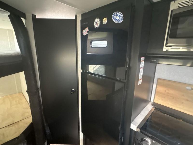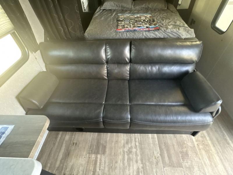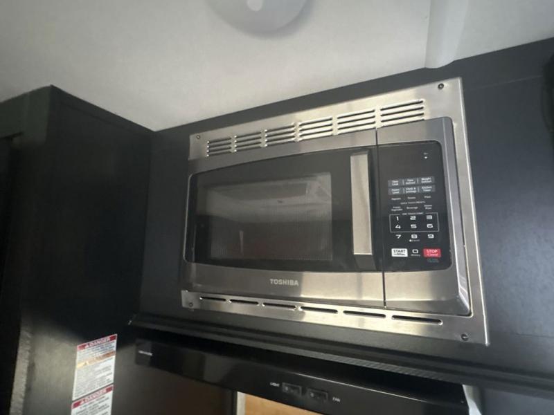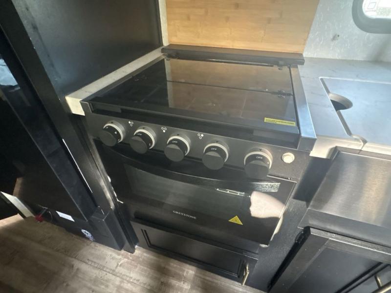 Enjoy cooking for nine in this Cherokee Grey Wolf travel trailer. With a three-burner cooktop, an overhead microwave, and an oven, you can easily cook just like home. The residential farm-style stainless steel sink makes cleaning your larger pots and pans quite simple, and the large overhead cabinets make storage an easy task as well. There is plenty of seating for the whole gang with the sofa and the booth dinette to play a game or two after you have enjoyed your delicious meal. Your kiddos are sure to love having their own set of double-size bunks conveniently located next to the rear bath, and you will love having your own front semi-private bedroom when you close the privacy curtain. You can also create some outdoor living space beneath the 15' power awning so that you can enjoy the great outdoors whether rain or shine!