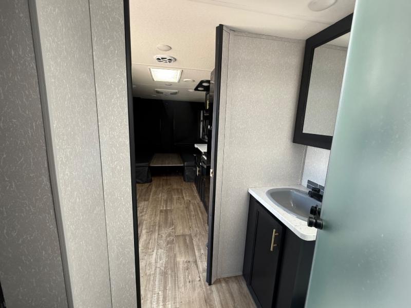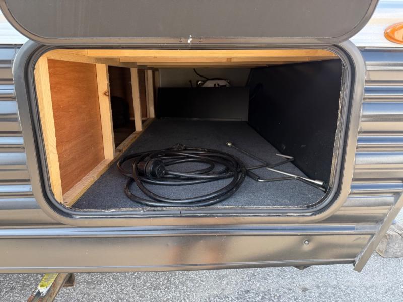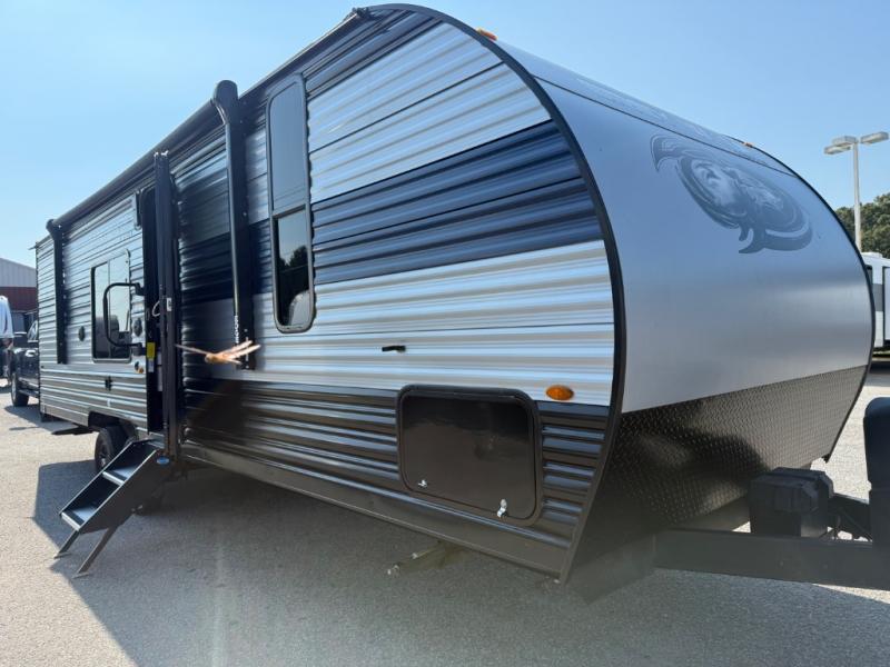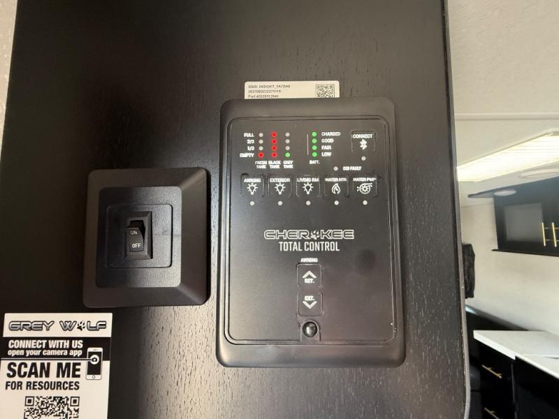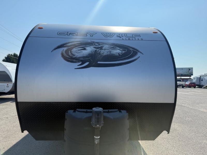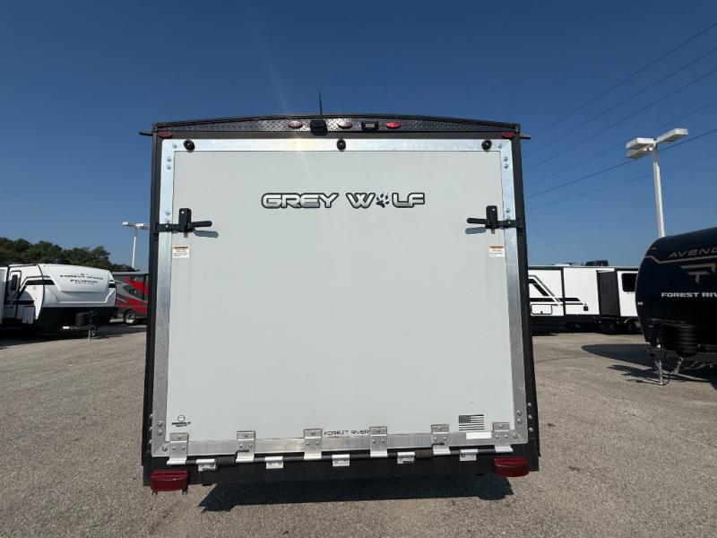 Whether it's a journey that will take you to new locations or a tried-and-true getaway to that favorite and memorable destination, the Forest River Cherokee Grey Wolf travel trailers and toy haulers are going to make the trip worth it every single time! You can travel in confidence with the premium wheel package, seamless roofing membrane with heat reflectivity, Power Gear frame technology with space-saver rail design, and Cherokee back-up camera system. The Cherokee Grey Wolf's interior is highly attractive with its stainless steel kitchen suite package, premium bedding ensemble and comforter, and 8" ceiling-mounted subwoofer with accent lighting. You will also find a black waste tank flush-out kit, an outside shower with hot and cold water, an armored underbelly tank enclosure, a power tongue jack, and an RV grill quick connect.