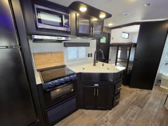 Whether it's a journey that will take you to new locations or a tried-and-true getaway to that favorite and memorable destination, the Forest River Cherokee Grey Wolf travel trailers and toy haulers are going to make the trip worth it every single time! You can travel in confidence with the premium wheel package, seamless roofing membrane with heat reflectivity, Power Gear frame technology with space-saver rail design, and Cherokee back-up camera system. The Cherokee Grey Wolf's interior is highly attractive with its stainless steel kitchen suite package, premium bedding ensemble and comforter, and 8" ceiling-mounted subwoofer with accent lighting. You will also find a black waste tank flush-out kit, an outside shower with hot and cold water, an armored underbelly tank enclosure, a power tongue jack, and an RV grill quick connect.