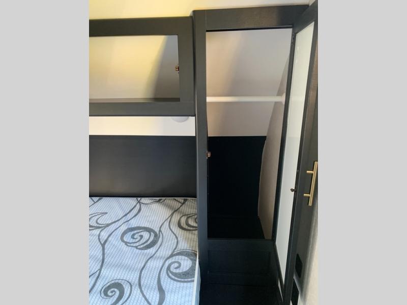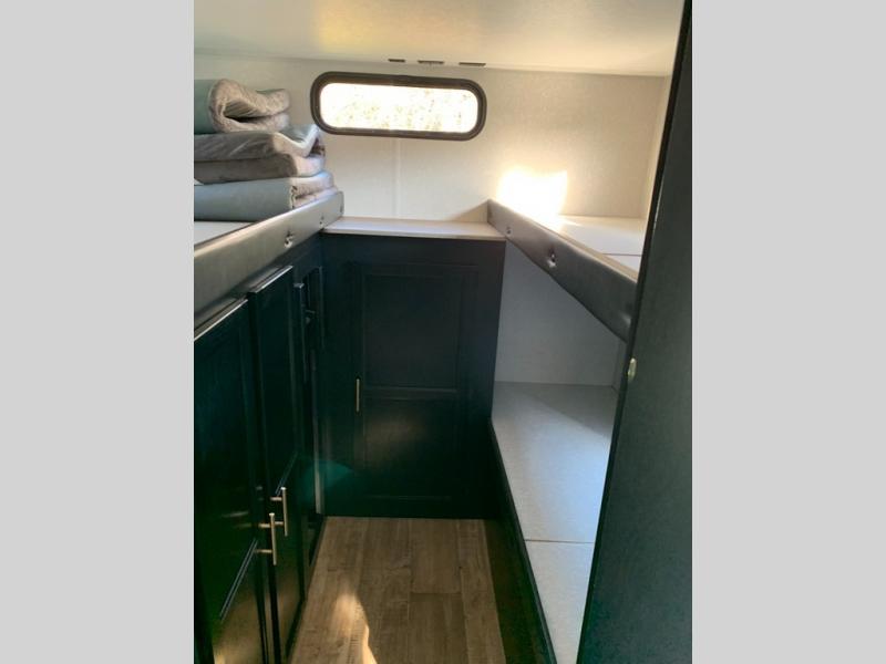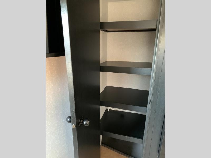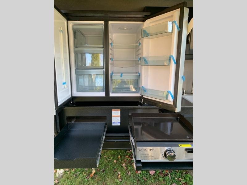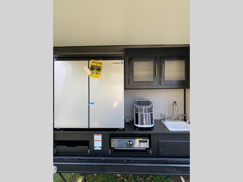 Your larger family will love spending weekends away with this Cherokee Grey Wolf travel trailer as their home away from home. This model offers lots of sleeping space with three bunk beds in the rear private bunkhouse. In the front, there is a master suite with wardrobes and nightstands on either side of the queen bed, and it even has private access to the dual-entry bath. The two entry doors will make accessing the trailer easy for everyone, and you will appreciate the abundant storage throughout this unit including large overhead cabinets, a walk-in pantry, and numerous outside storage compartments for all of your outdoor gear. You also even have an outdoor kitchen!