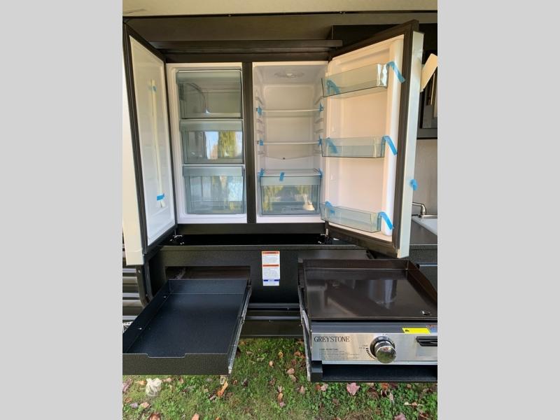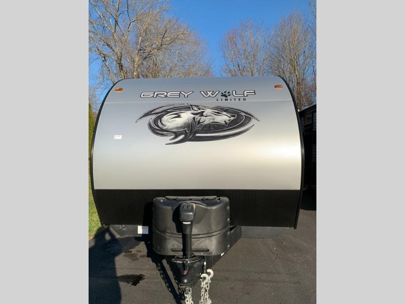 Whether it's a journey that will take you to new locations or a tried-and-true getaway to that favorite and memorable destination, the Forest River Cherokee Grey Wolf travel trailers and toy haulers are going to make the trip worth it every single time! You can travel in confidence with the premium wheel package, seamless roofing membrane with heat reflectivity, Power Gear frame technology with space-saver rail design, and Cherokee back-up camera system. The Cherokee Grey Wolf's interior is highly attractive with its stainless steel kitchen suite package, premium bedding ensemble and comforter, and 8" ceiling-mounted subwoofer with accent lighting. You will also find a black waste tank flush-out kit, an outside shower with hot and cold water, an armored underbelly tank enclosure, a power tongue jack, and an RV grill quick connect.