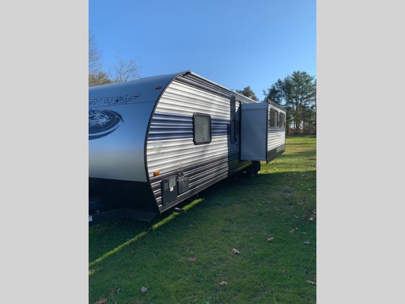 Whether it's a journey that will take you to new locations or a tried-and-true getaway to that favorite and memorable destination, the Forest River Cherokee Grey Wolf travel trailers and toy haulers are going to make the trip worth it every single time! You can travel in confidence with the premium wheel package, seamless roofing membrane with heat reflectivity, Power Gear frame technology with space-saver rail design, and Cherokee back-up camera system. The Cherokee Grey Wolf's interior is highly attractive with its stainless steel kitchen suite package, premium bedding ensemble and comforter, and 8" ceiling-mounted subwoofer with accent lighting. You will also find a black waste tank flush-out kit, an outside shower with hot and cold water, an armored underbelly tank enclosure, a power tongue jack, and an RV grill quick connect.