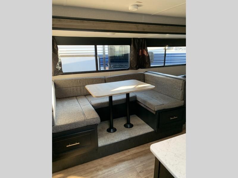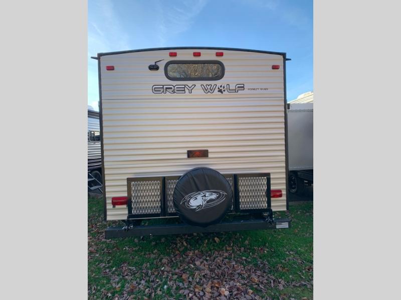 Whether it's a journey that will take you to new locations or a tried-and-true getaway to that favorite and memorable destination, the Forest River Cherokee Grey Wolf travel trailers and toy haulers are going to make the trip worth it every single time! You can travel in confidence with the premium wheel package, seamless roofing membrane with heat reflectivity, Power Gear frame technology with space-saver rail design, and Cherokee back-up camera system. The Cherokee Grey Wolf's interior is highly attractive with its stainless steel kitchen suite package, premium bedding ensemble and comforter, and 8" ceiling-mounted subwoofer with accent lighting. You will also find a black waste tank flush-out kit, an outside shower with hot and cold water, an armored underbelly tank enclosure, a power tongue jack, and an RV grill quick connect.