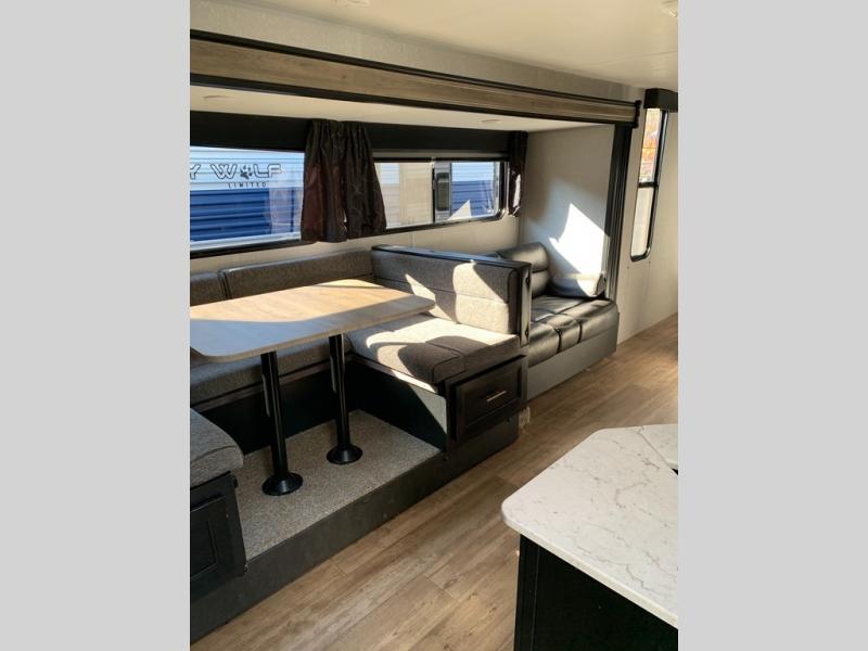 Whether it's a journey that will take you to new locations or a tried-and-true getaway to that favorite and memorable destination, the Forest River Cherokee Grey Wolf travel trailers and toy haulers are going to make the trip worth it every single time! You can travel in confidence with the premium wheel package, seamless roofing membrane with heat reflectivity, Power Gear frame technology with space-saver rail design, and Cherokee back-up camera system. The Cherokee Grey Wolf's interior is highly attractive with its stainless steel kitchen suite package, premium bedding ensemble and comforter, and 8" ceiling-mounted subwoofer with accent lighting. You will also find a black waste tank flush-out kit, an outside shower with hot and cold water, an armored underbelly tank enclosure, a power tongue jack, and an RV grill quick connect.