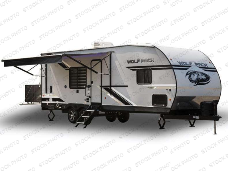 Run with the pack in any one of these Forest River Cherokee Wolf Pack toy haulers! They are affordable and versatile with a 102" widebody design to pack in all of the necessary features for a great adventure with your family and toys. The grey high gloss gel exterior will turn heads on the highway and the LED interior/exterior lights will make life easier. An outside shower with hot and cold water helps to keep the mud outside where it belongs. With an external 30 gallon fuel station, you won't have to worry about your toys being low on fuel. The Platinum package adds extra conveniences like a ramp door patio deck railing system, a Happijac bed lift system, and an industrial rubber garage floor on enclosed garage models. Come find the perfect model for you today!