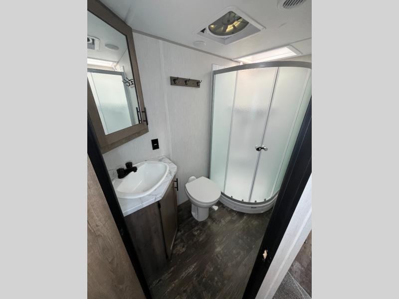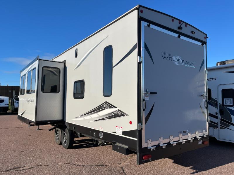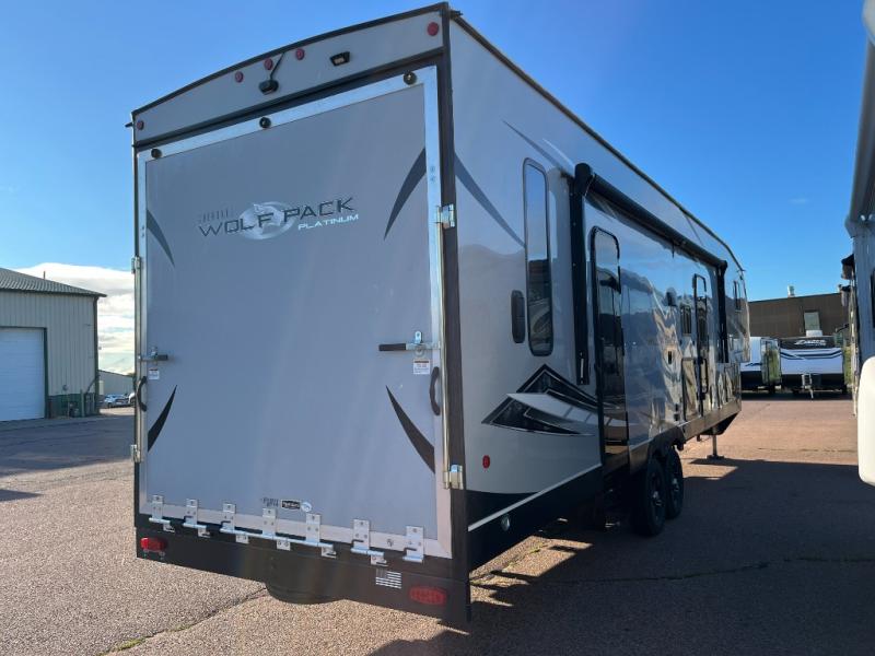 Run with the pack in any one of these Forest River Cherokee Wolf Pack toy haulers! They are affordable and versatile with a 102" widebody design to pack in all of the necessary features for a great adventure with your family and toys. The grey high gloss gel exterior will turn heads on the highway and the LED interior/exterior lights will make life easier. An outside shower with hot and cold water helps to keep the mud outside where it belongs. With an external 30 gallon fuel station, you won't have to worry about your toys being low on fuel. The Platinum package adds extra conveniences like a ramp door patio deck railing system, a Happijac bed lift system, and an industrial rubber garage floor on enclosed garage models. Come find the perfect model for you today!